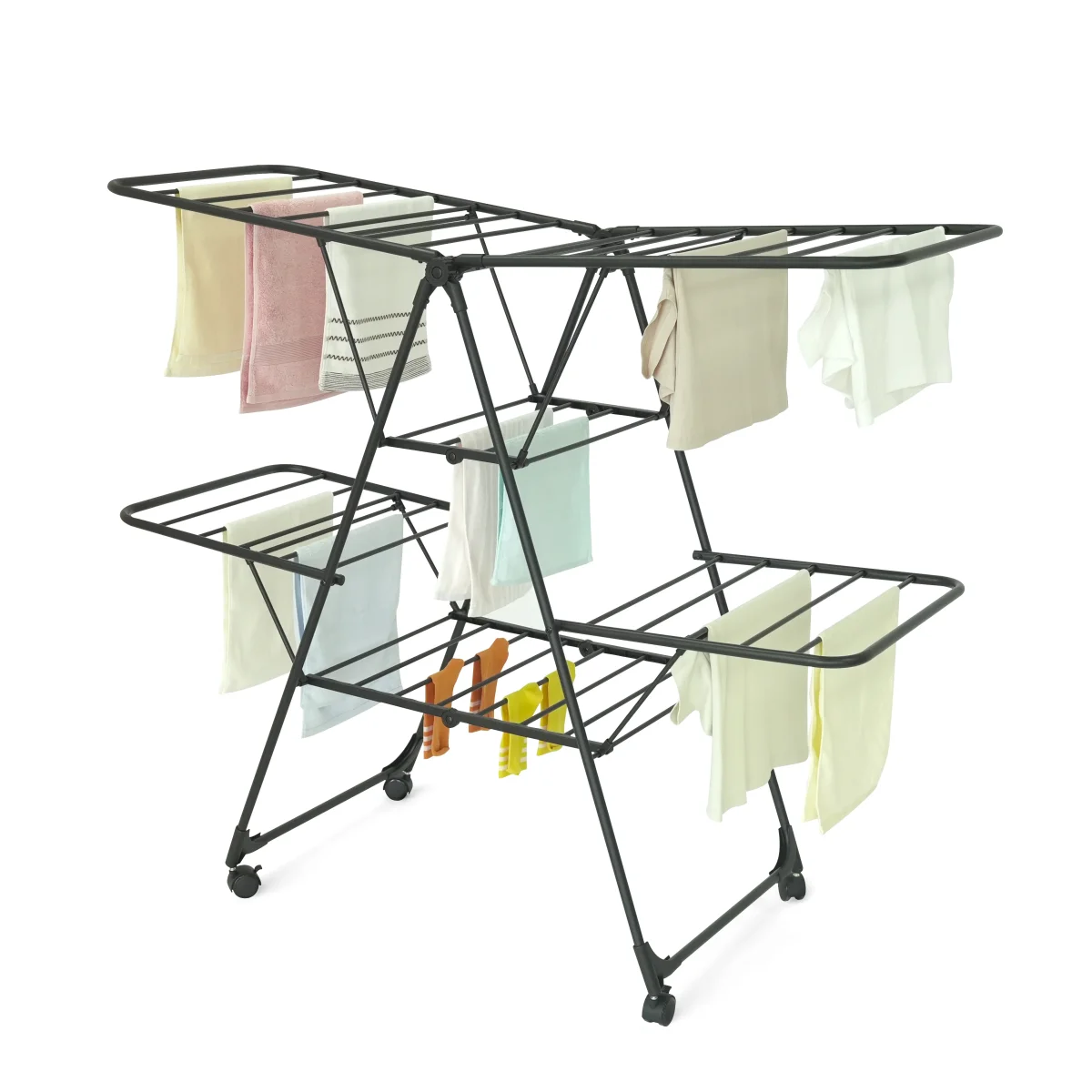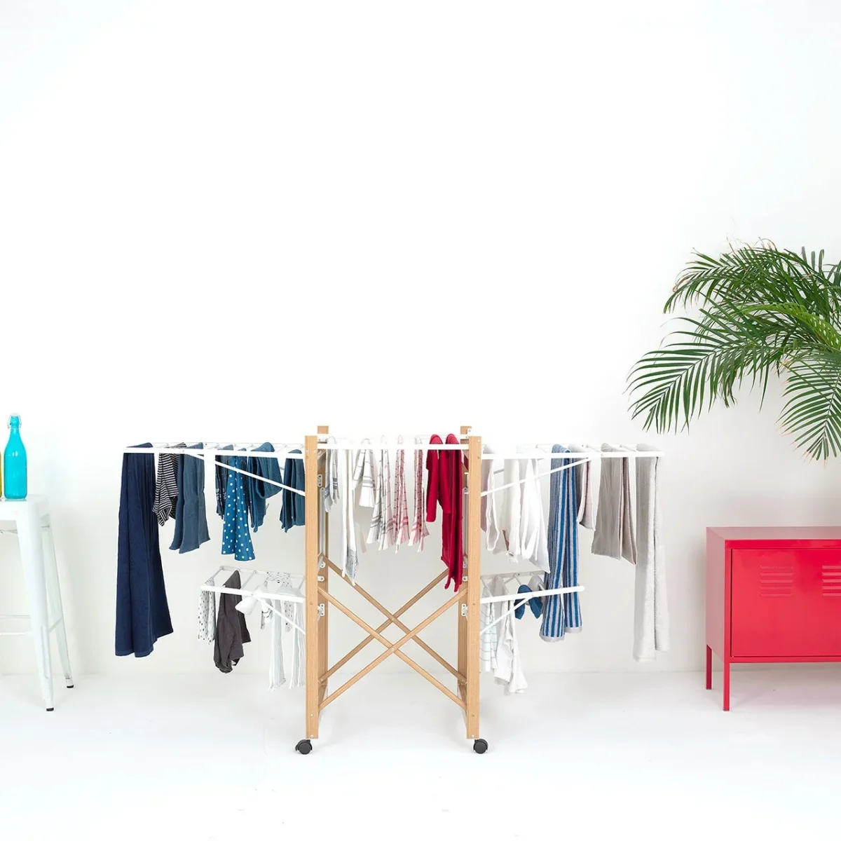Optimisez l’entretien de votre linge avec le séchoir à linge pliable ALBA, un étendoir intérieur grande capacité alliant design contemporain, robustesse et performance XXL. Conçu pour les familles, les maisons modernes et les appartements, ce séchoir type A-Frame offre une surface de séchage exceptionnelle de 26 mètres, idéale pour 2 à 3 machines de linge. Sa structure intelligente multi-niveaux permet de sécher simultanément draps, vêtements, linge de maison, jeans, serviettes, petits accessoires et textiles volumineux, tout en conservant un encombrement au sol optimisé avec une longueur de 157 cm. Robuste et élégant, le séchoir ALBA est fabriqué en acier haute qualité avec une finition noire mate “black powder coating”, garantissant une résistance à l’humidité, une durabilité accrue et un style industriel premium parfaitement adapté à une buanderie, un salon, une salle de bain ou une pièce à vivre moderne. Sa structure renforcée peut supporter jusqu’à 30 kg de linge humide, assurant une stabilité optimale même en charge maximale. Pratique au quotidien, malgré sa grande capacité d’étendage, le séchoir à linge ALBA reste léger et maniable avec un poids net de 5,1 kg. Ses pieds équipés de roulettes facilitent le déplacement d’une pièce à l’autre, selon vos besoins ou l’ensoleillement intérieur. Pliable et compact une fois replié, il se range facilement dans un placard, un cellier ou derrière une porte. Séchoir à linge pliable ALBA, étendoir intérieur grande capacité, 26 m d’étendage, structure acier, noir mat, design industriel, gain de place, robuste, mobile, supporte charges lourdes, usage familial.