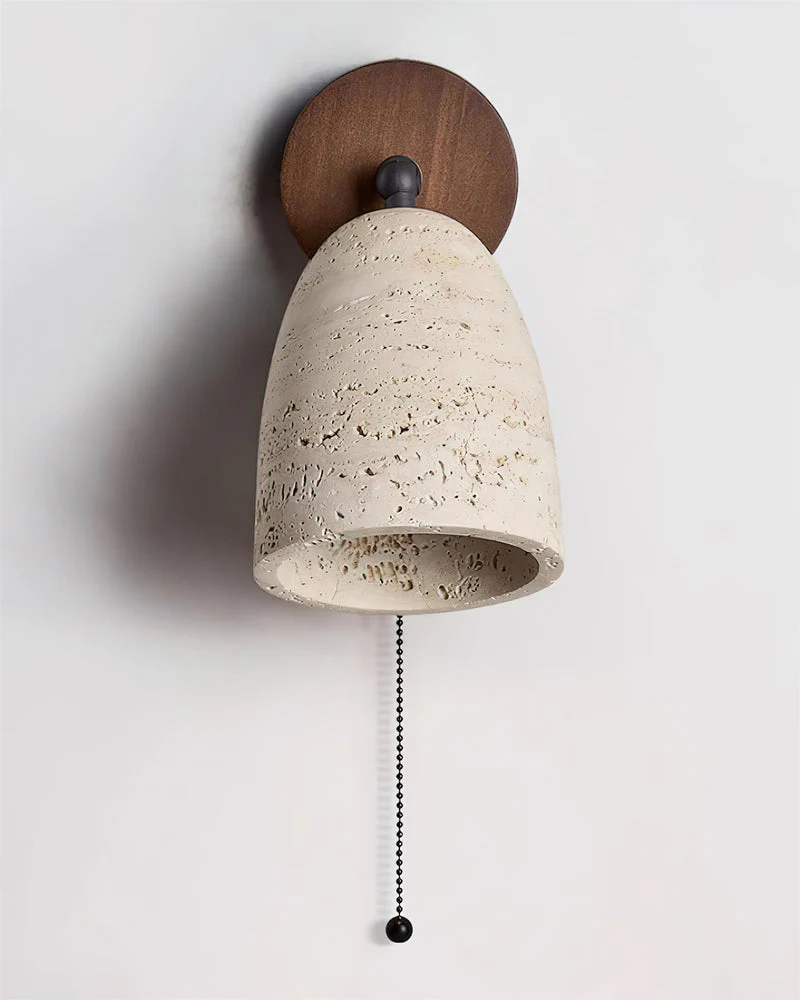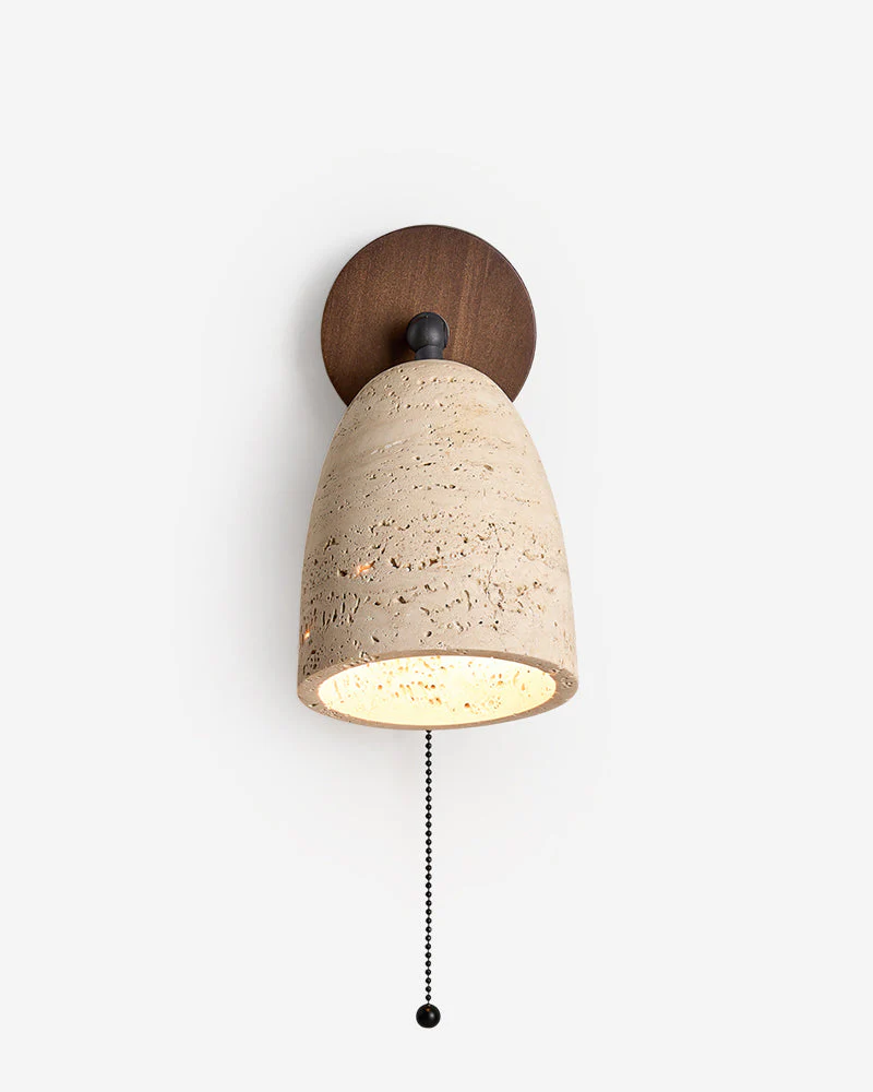 Applique Murale LILA : L’Équilibre Sculptural du Travertin Naturel et du Bois de Noyer