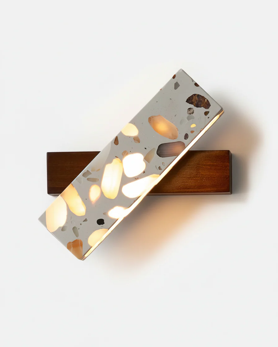 Applique Murale ELKA : L’Harmonie Sculpturale du Terrazzo et du Noyer