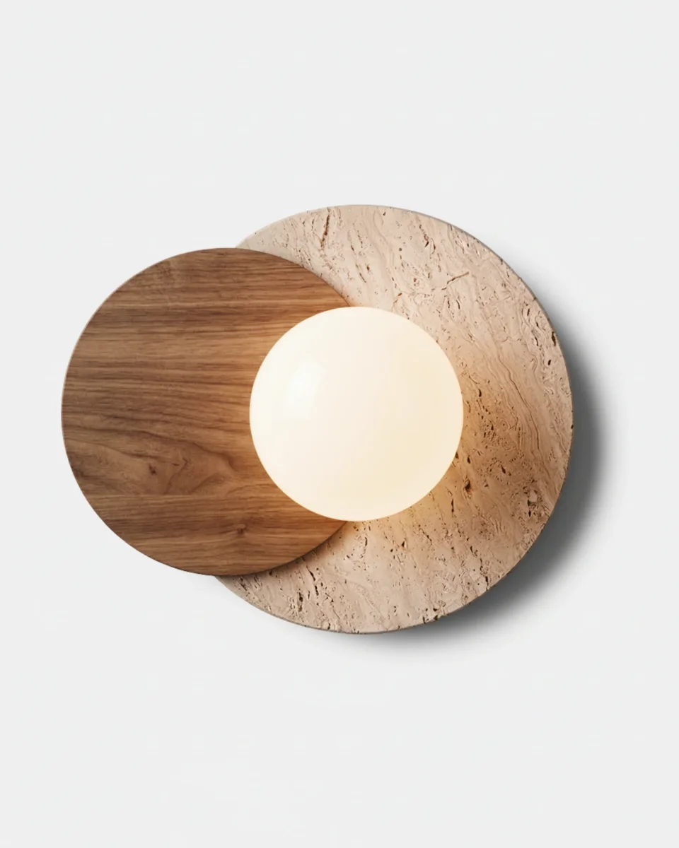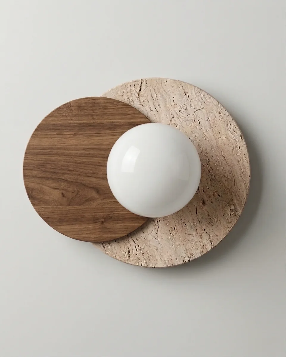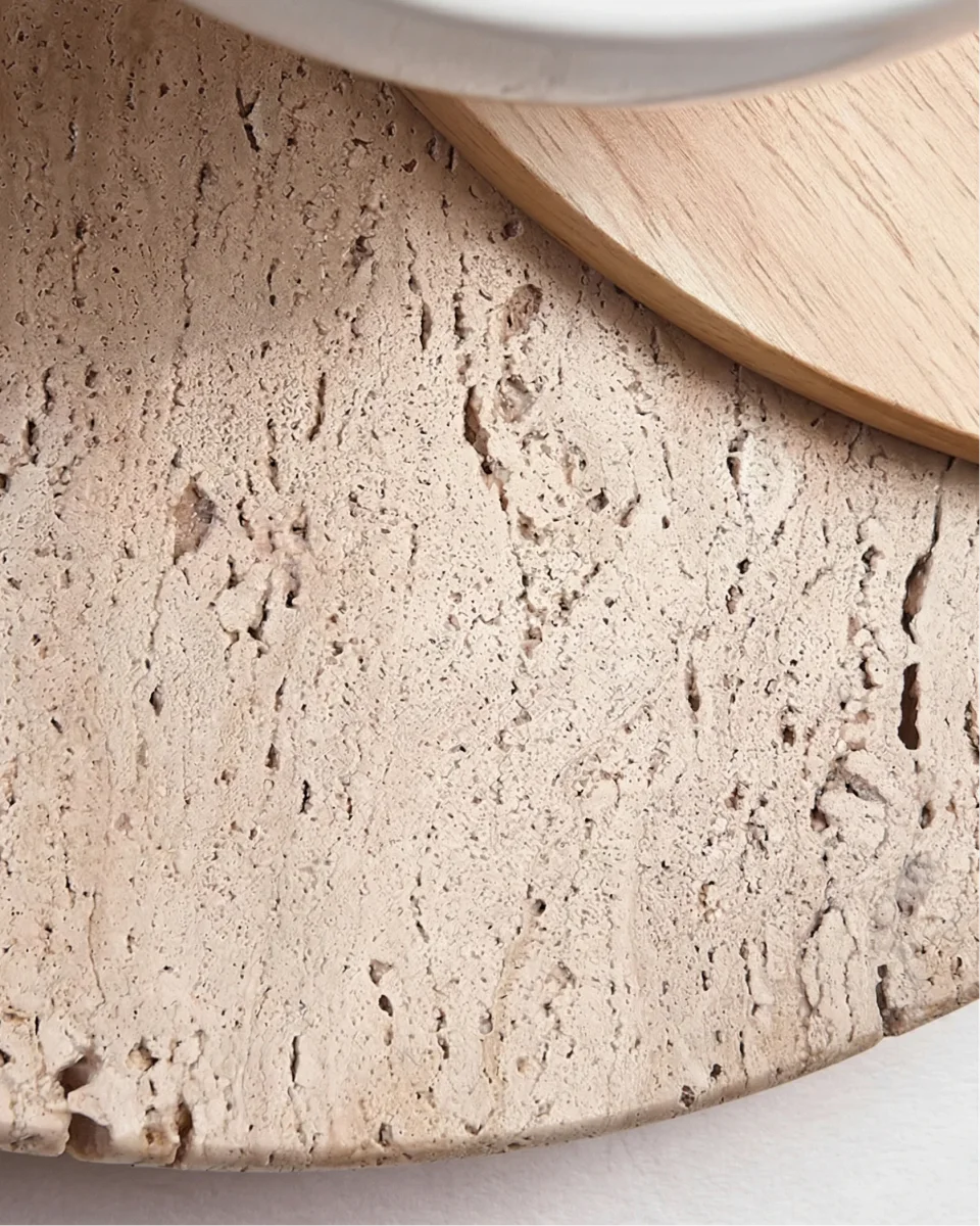 Applique Murale & Plafonnier MAKU : L’Équilibre Sculptural du Travertin Jaune et du Bois