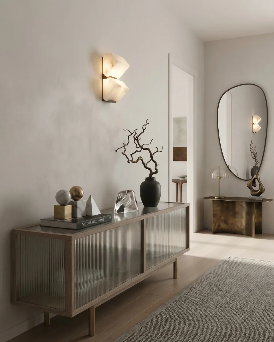 Applique Murale NORI : La Magie de l’Albâtre Véritable et du Laiton Architectural