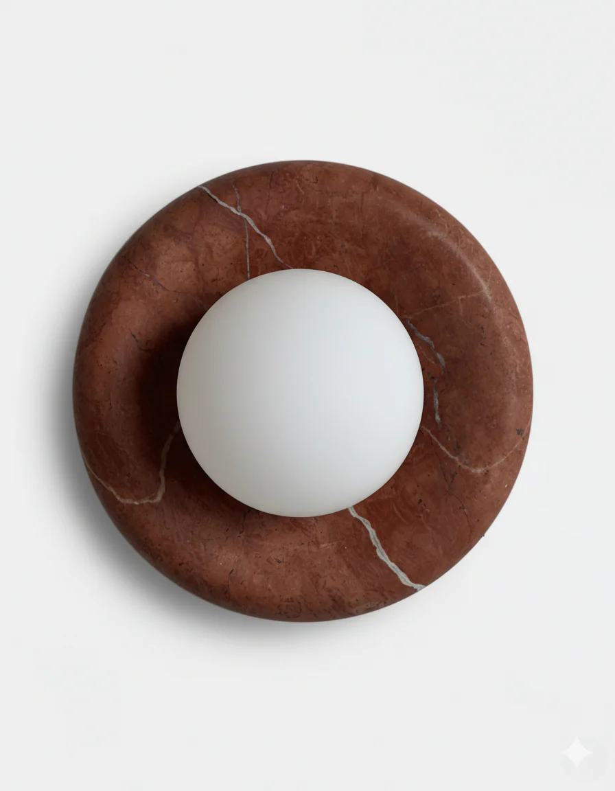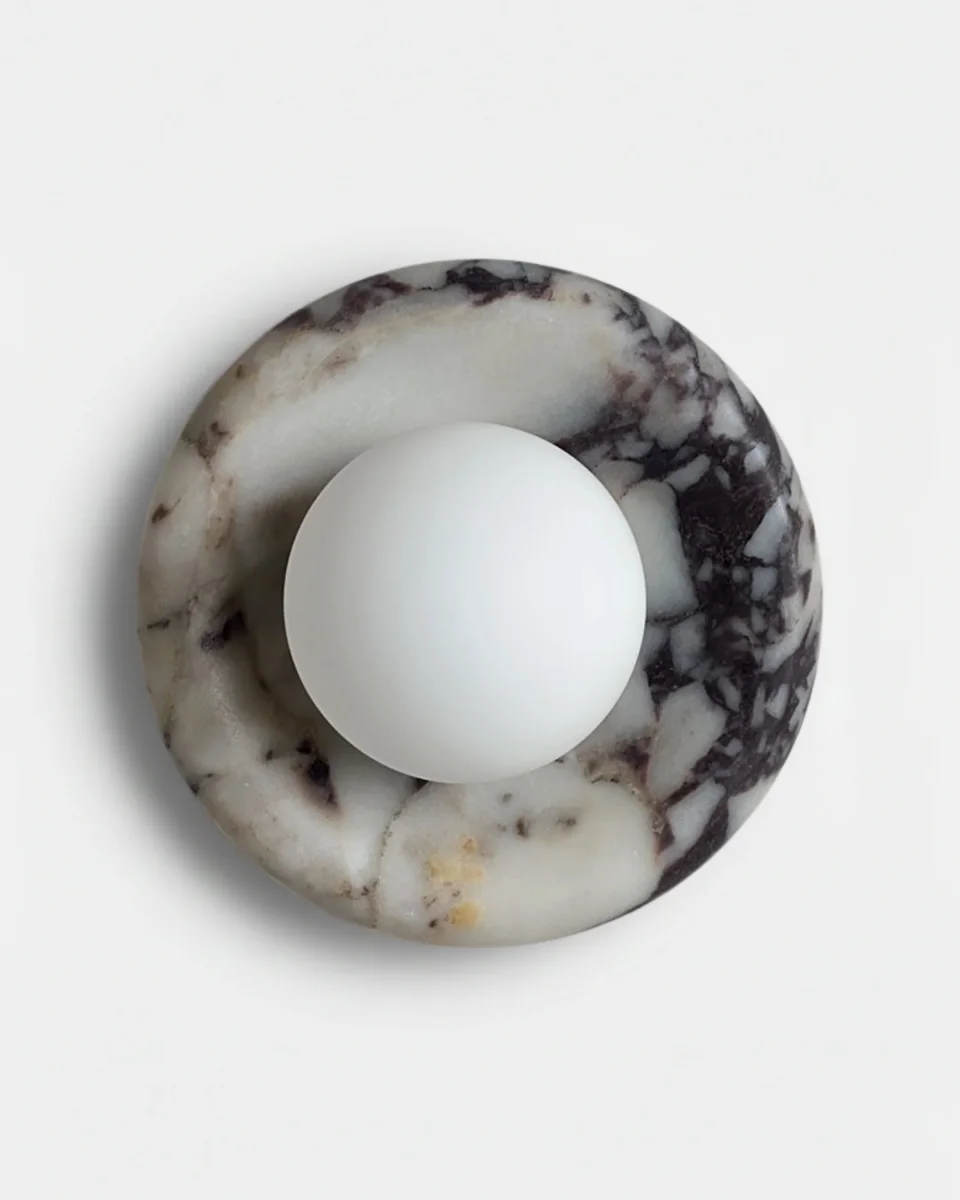Inspirée par la tendance « Modern Luxury » et l’esthétique Wabi-sabi, l’applique RUBI met à l’honneur les matériaux bruts. Sa monture de 20 cm de diamètre est taillée dans un bloc de marbre véritable. Chaque pièce est absolument unique : les veinages naturels de la pierre, formés au fil du temps, garantissent que votre luminaire possède une identité exclusive. C’est l’alliée incontournable des intérieurs prestigieux, parfaite pour habiller une salle de bain haut de gamme, un couloir épuré ou une chambre à coucher intimiste.