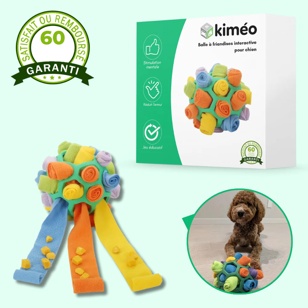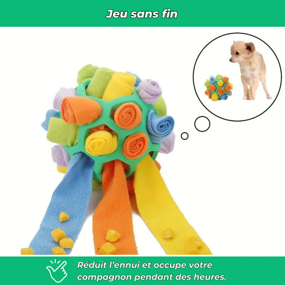 Balle distributrice de friandises pour chien – Jouet interactif et éducatif