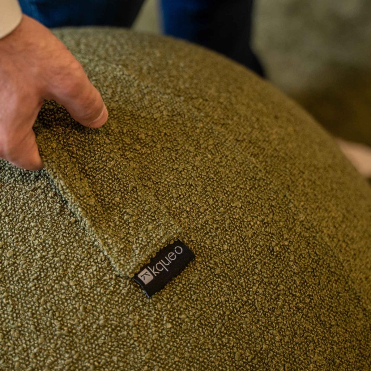 Siège ballon ergonomique KQUEO Sphera Bouclette, revêtement bouclette doux et texturé, base lestée anti-roulement, poignée intégrée, pompe fournie, idéal pour varier les postures.