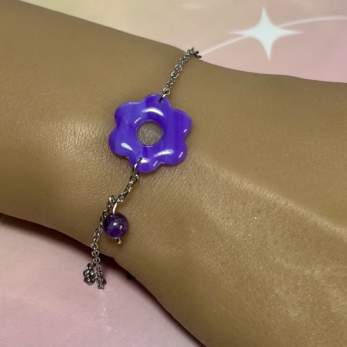Plongez dans l’univers raffiné des bracelets Flora, une collection unique mêlant la douceur florale artisanale à l’éclat précieux des pierres fines ou des strass. Chaque bracelet est composé d’une chaîne en acier inoxydable , ornée de pampilles fleurs en pâte polymère minutieusement façonnées à la main, accompagnées de détails luxueux :