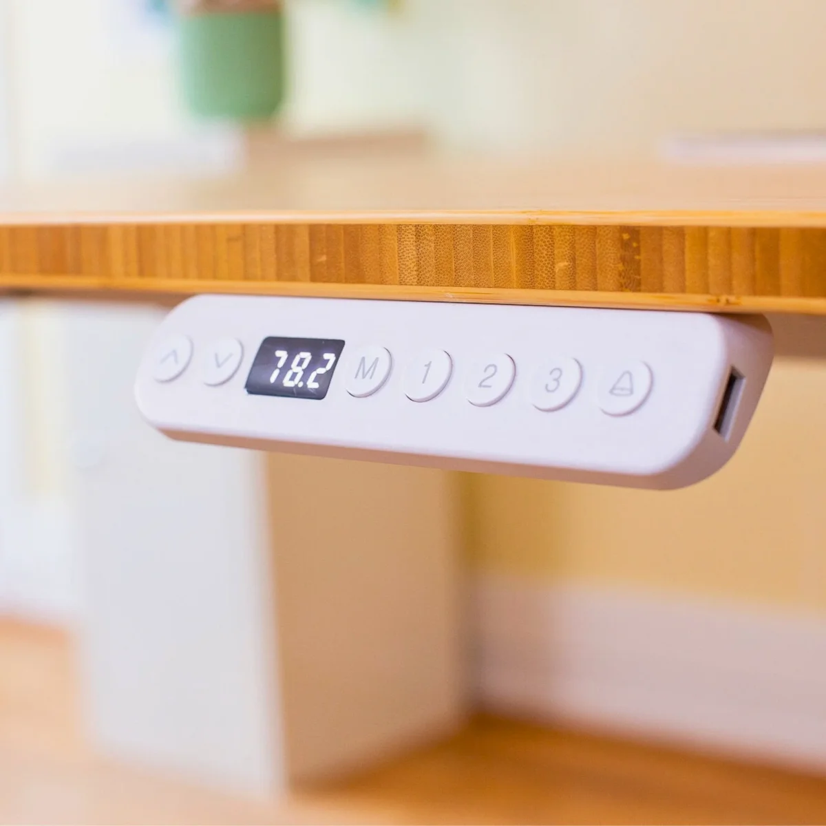 Avec ses 80 cm de profondeur, ce modèle de 120×80 cm offre une surface à la fois compacte et confortable pour travailler efficacement. Le plateau en bambou naturel repose sur un piètement rond au design contemporain. Réglez votre hauteur au centimètre près, mémorisez vos positions préférées, activez le minuteur intégré et rechargez vos appareils grâce au port USB. Stable et silencieux, il vous accompagne au quotidien avec efficacité et élégance.