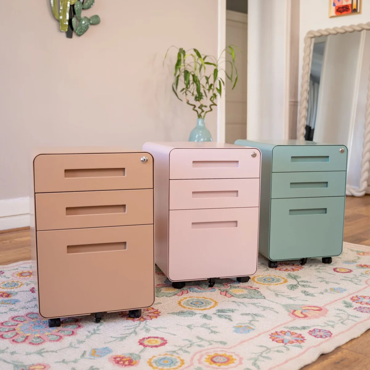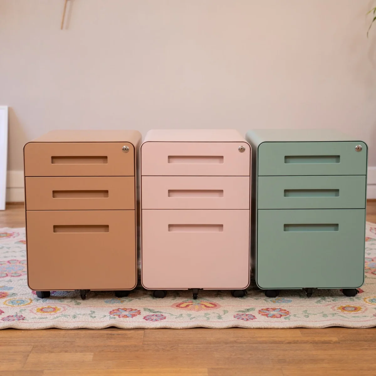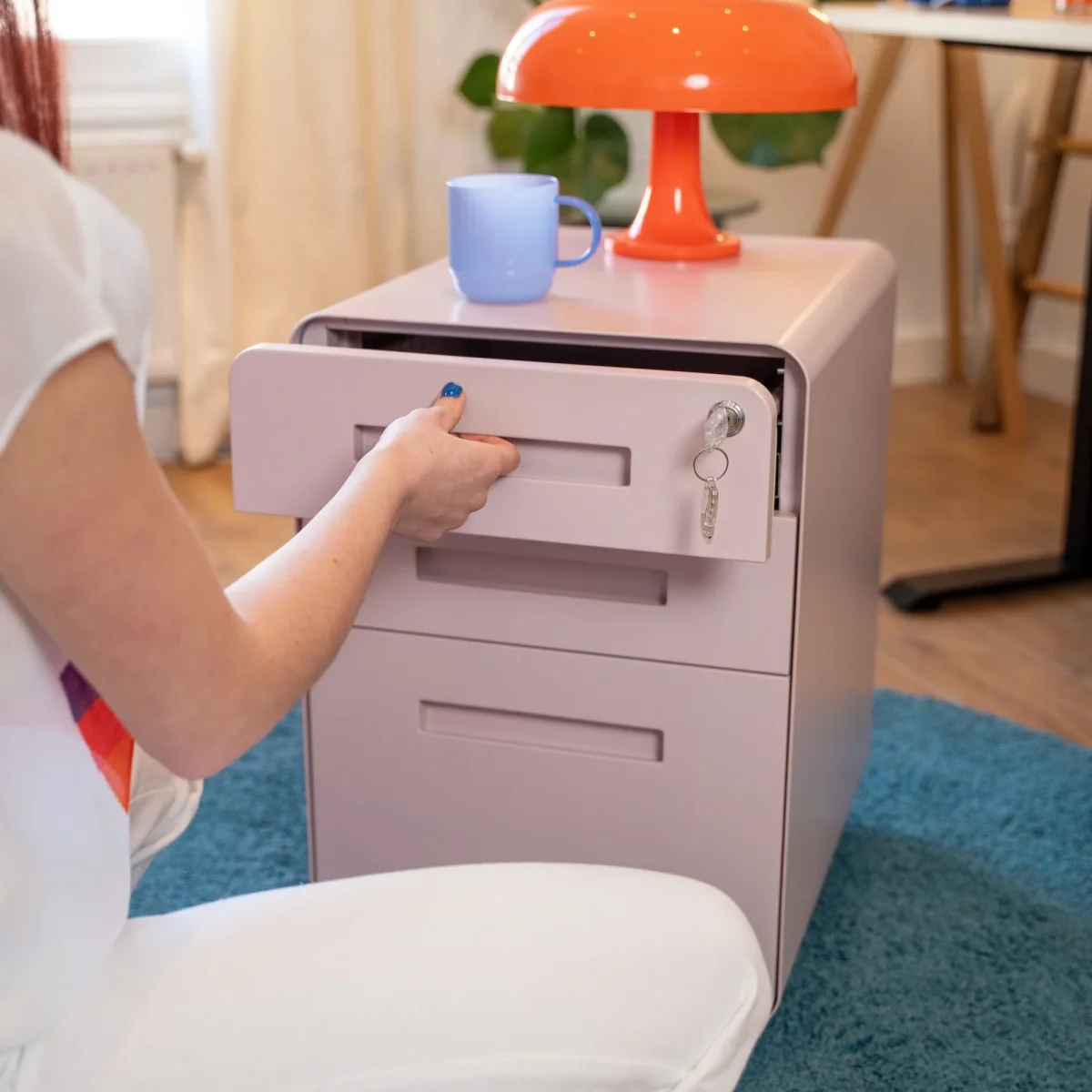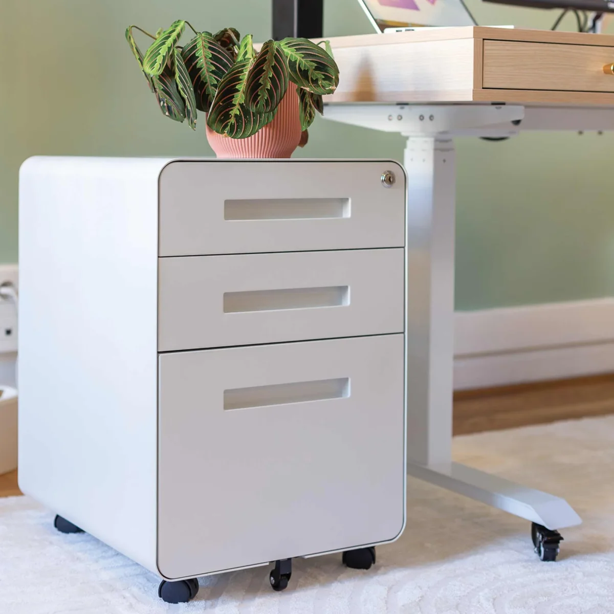 Robuste et élégant, ce caisson tout métal se glisse facilement sous votre bureau. Les trois tiroirs à ouverture fluide accueillent fournitures, dossiers ou objets volumineux, avec un séparateur intégré dans le tiroir supérieur. Monté sur 5 roulettes dont une anti-bascule, il est stable, mobile et sécurisé grâce à une serrure centrale. Un allié design et fonctionnel pour garder un espace bien rangé.