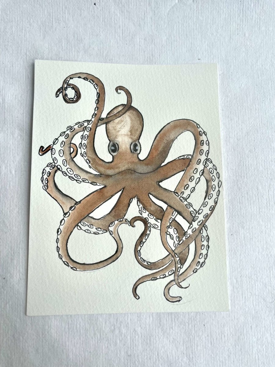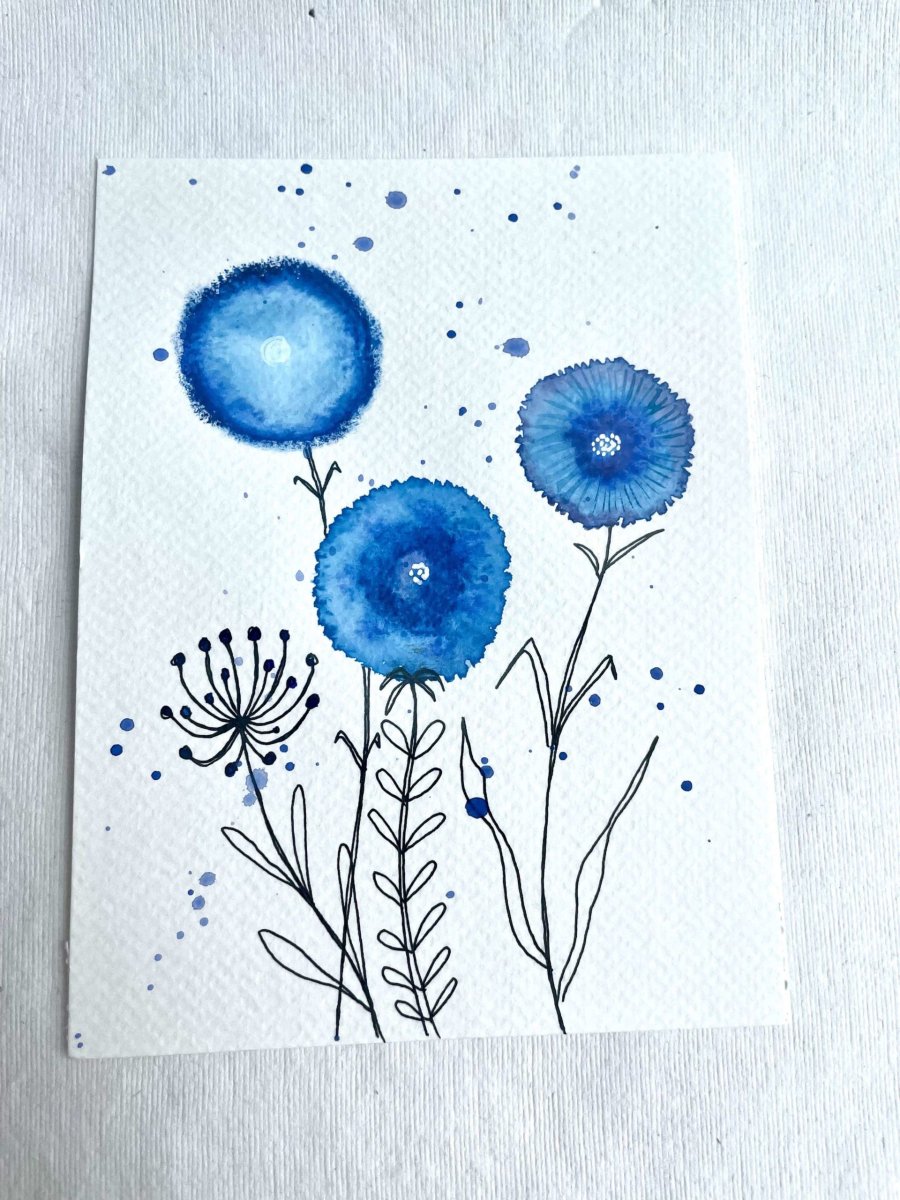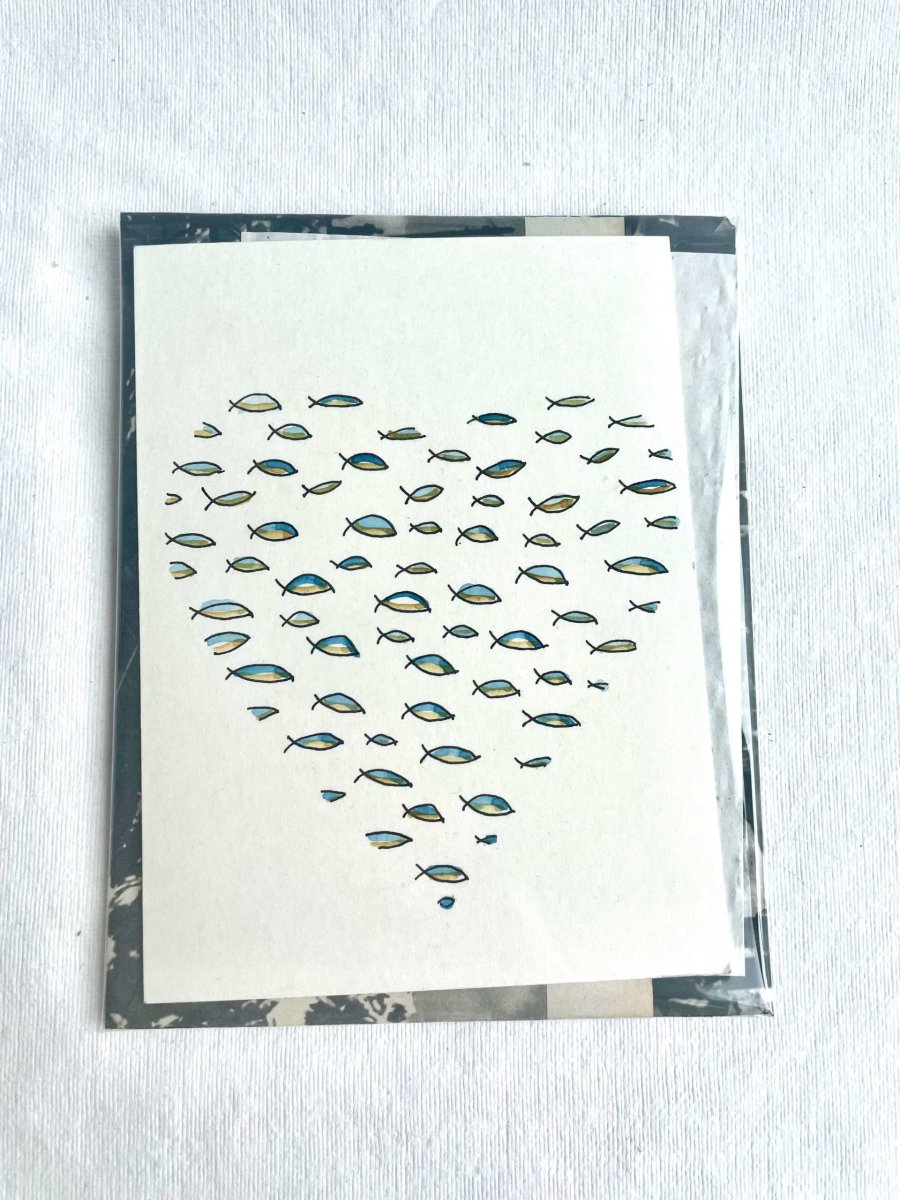 Je peins les cartes aquarelle dans mon atelier et fabrique les enveloppes éco-responsables avec des magazines vintage.