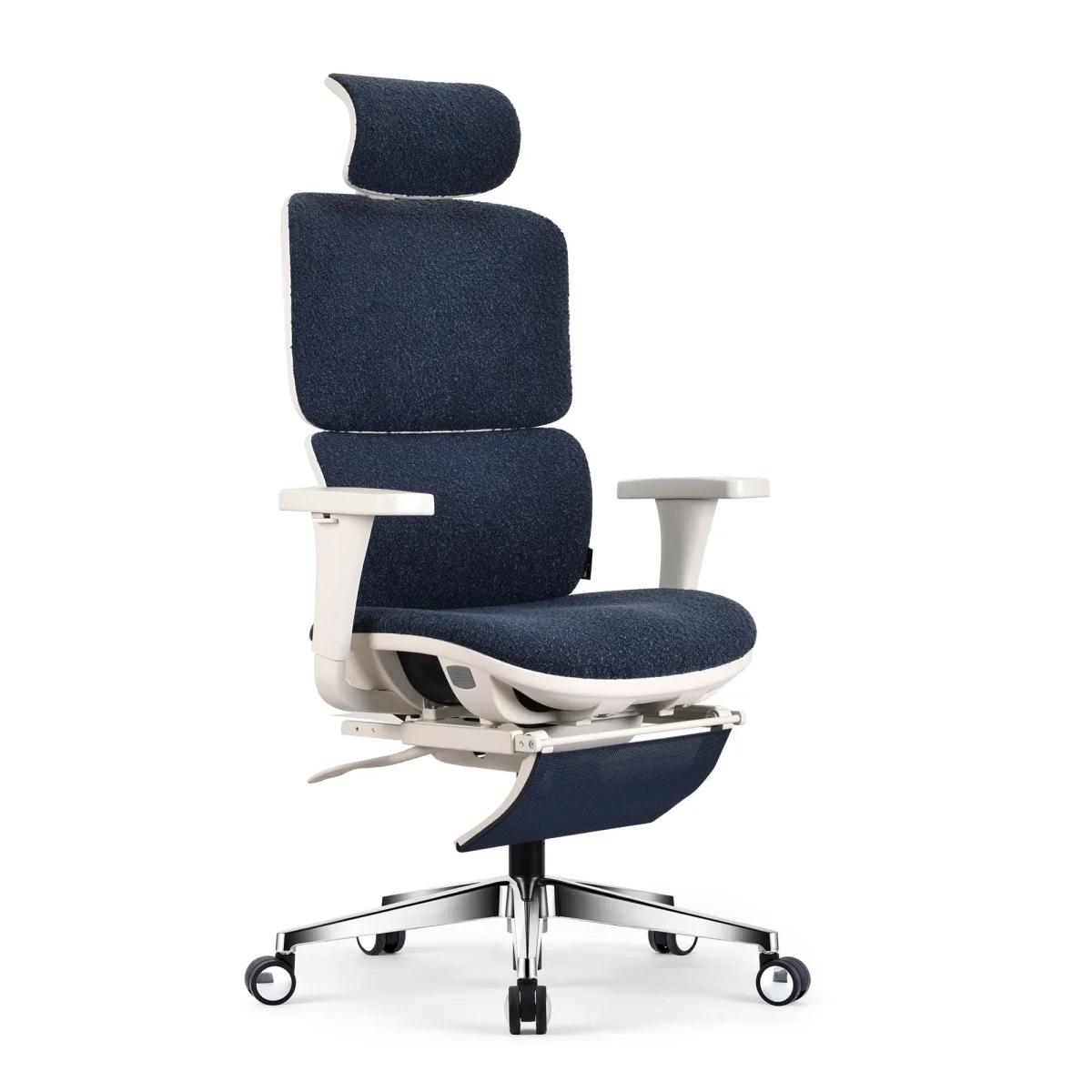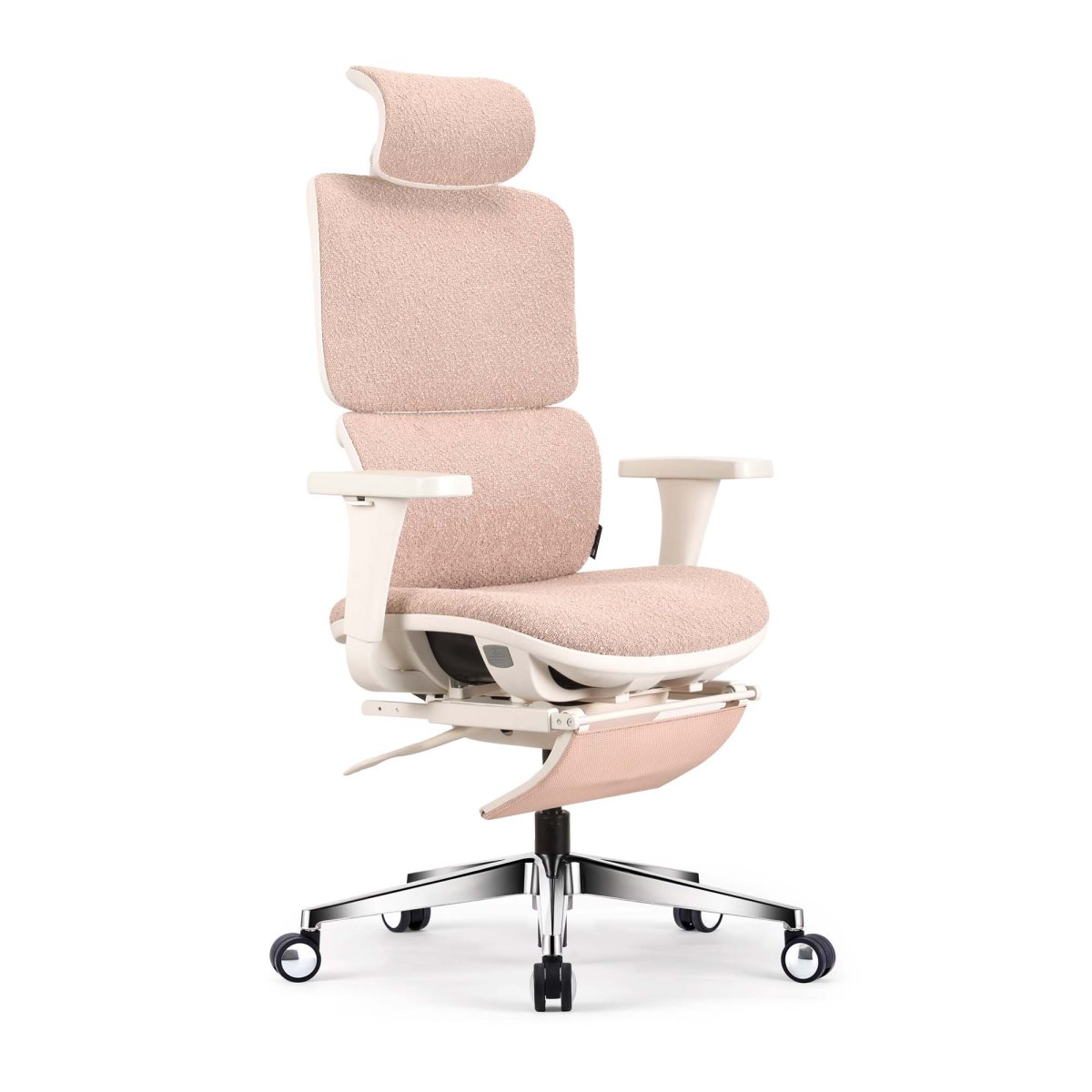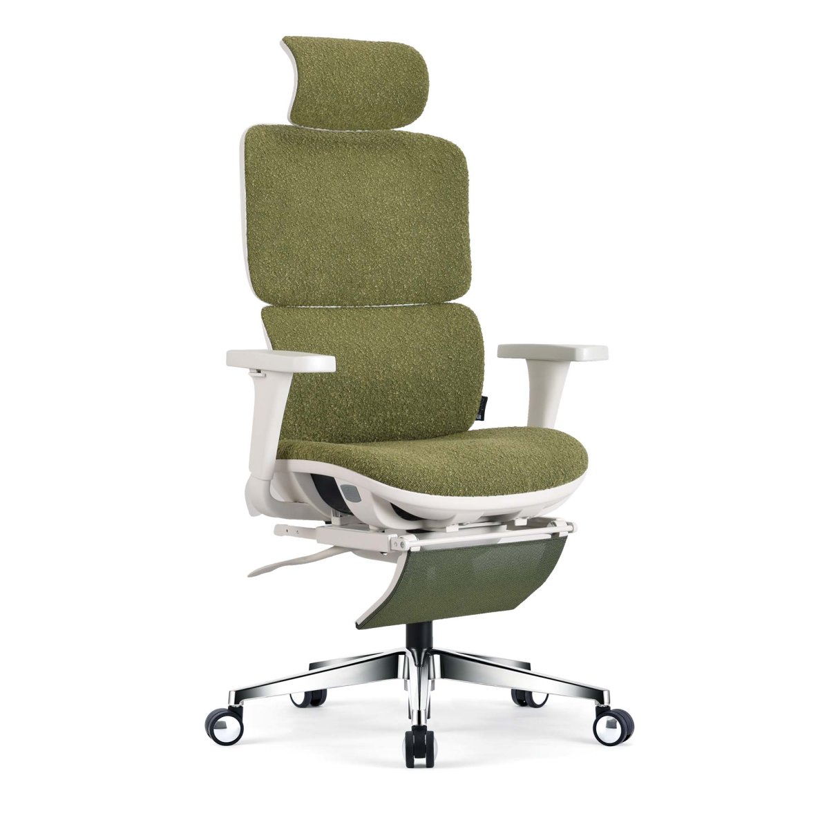 La KQUEO Terrana en tissu bouclette allie confort moelleux et esthétisme contemporain. Son revêtement moutonné apporte chaleur et douceur au quotidien, dans un style cocooning élégant. Dotée d’un dossier ajustable, d’un appuie-tête réglable et d’un repose-pied escamotable, cette chaise ergonomique accompagne chaque posture. Sa structure blanche s’intègre parfaitement dans les intérieurs modernes. Une chaise ergonomique aussi agréable pour le corps que pour les yeux.