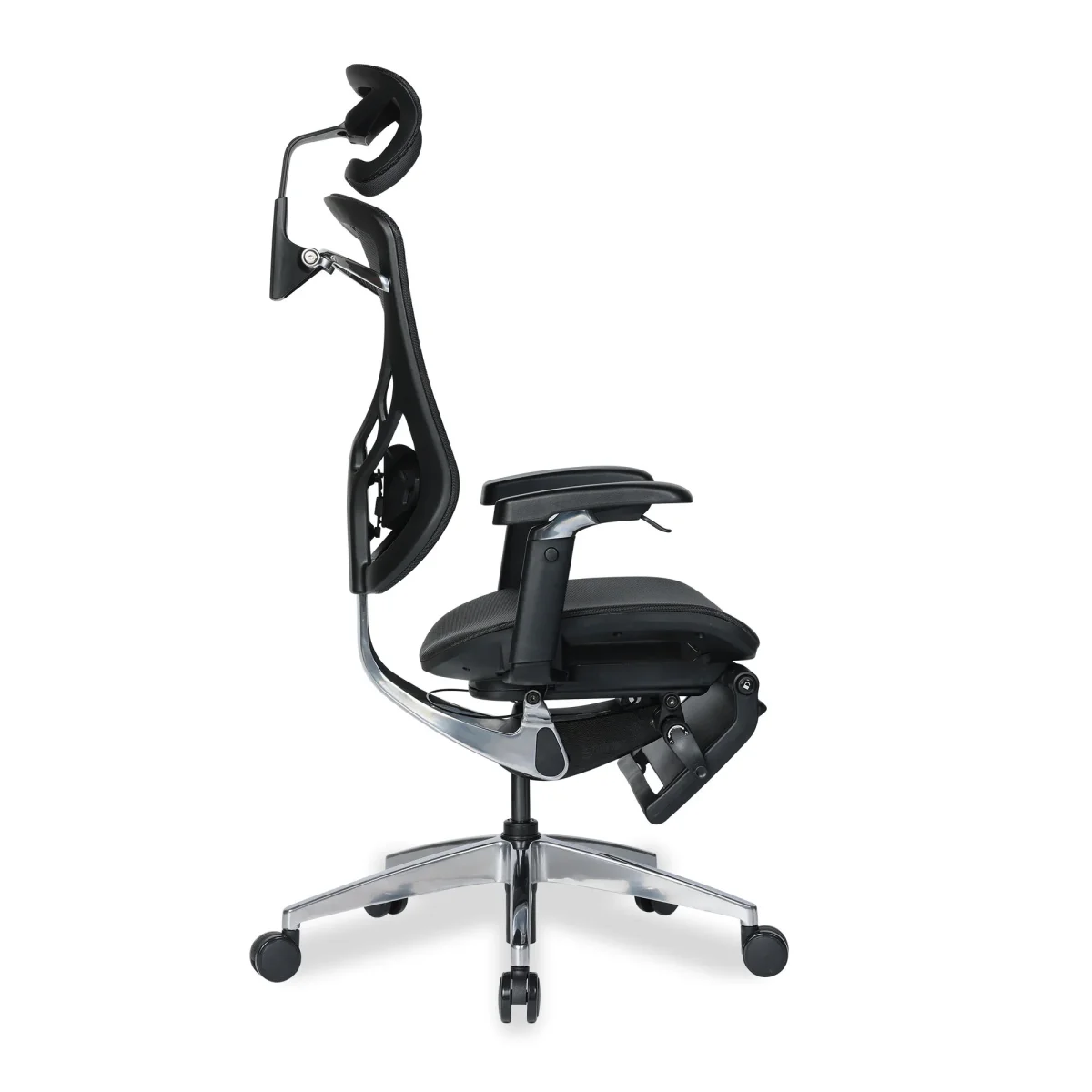 Pensée pour une utilisation professionnelle, créative ou gaming, la Nova combine ergonomie, technologie et design haut de gamme. Son dossier en maille élastique épouse naturellement la courbure du dos, avec un support lombaire rembourré réglable et une inclinaison fine sur 15 positions. Le confort est renforcé par une assise respirante ajustable en profondeur, un appuie-tête orientable et des accoudoirs 5D avec commandes intégrées (hauteur, inclinaison). Le repose-pied dépliable permet d’alterner les postures et de s’accorder une pause allongée. Robuste (cadre en aluminium ADC12, vérin classe IV, jusqu’à 136 kg), fluide et silencieuse, Nova offre un soutien constant et intuitif pour vos longues journées de travail ou vos sessions prolongées.