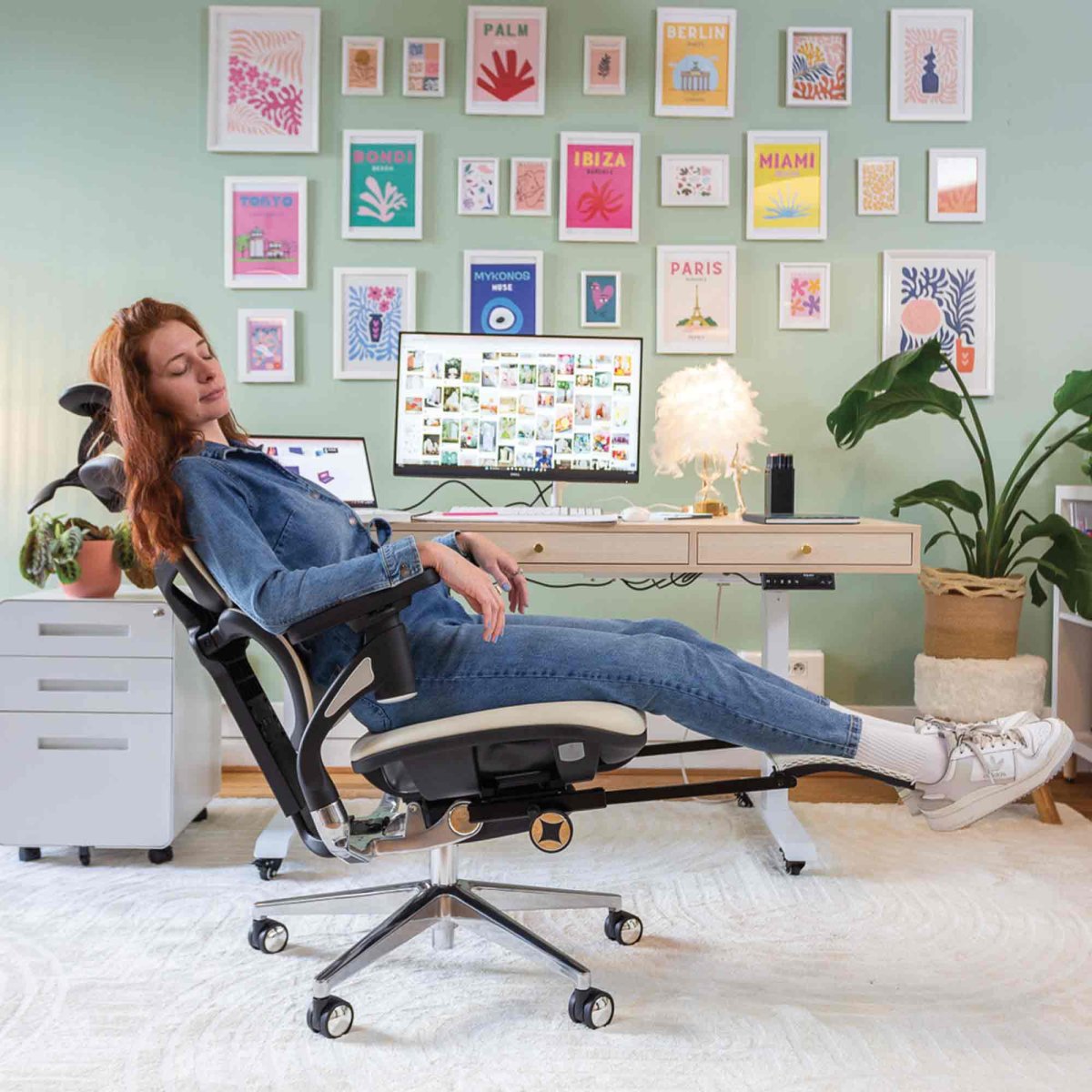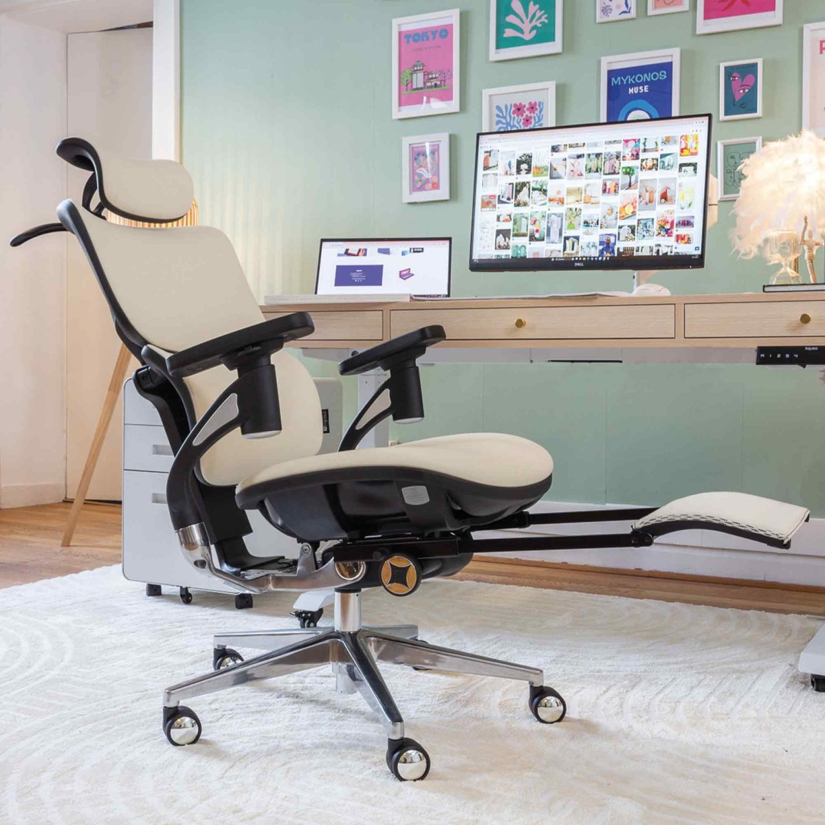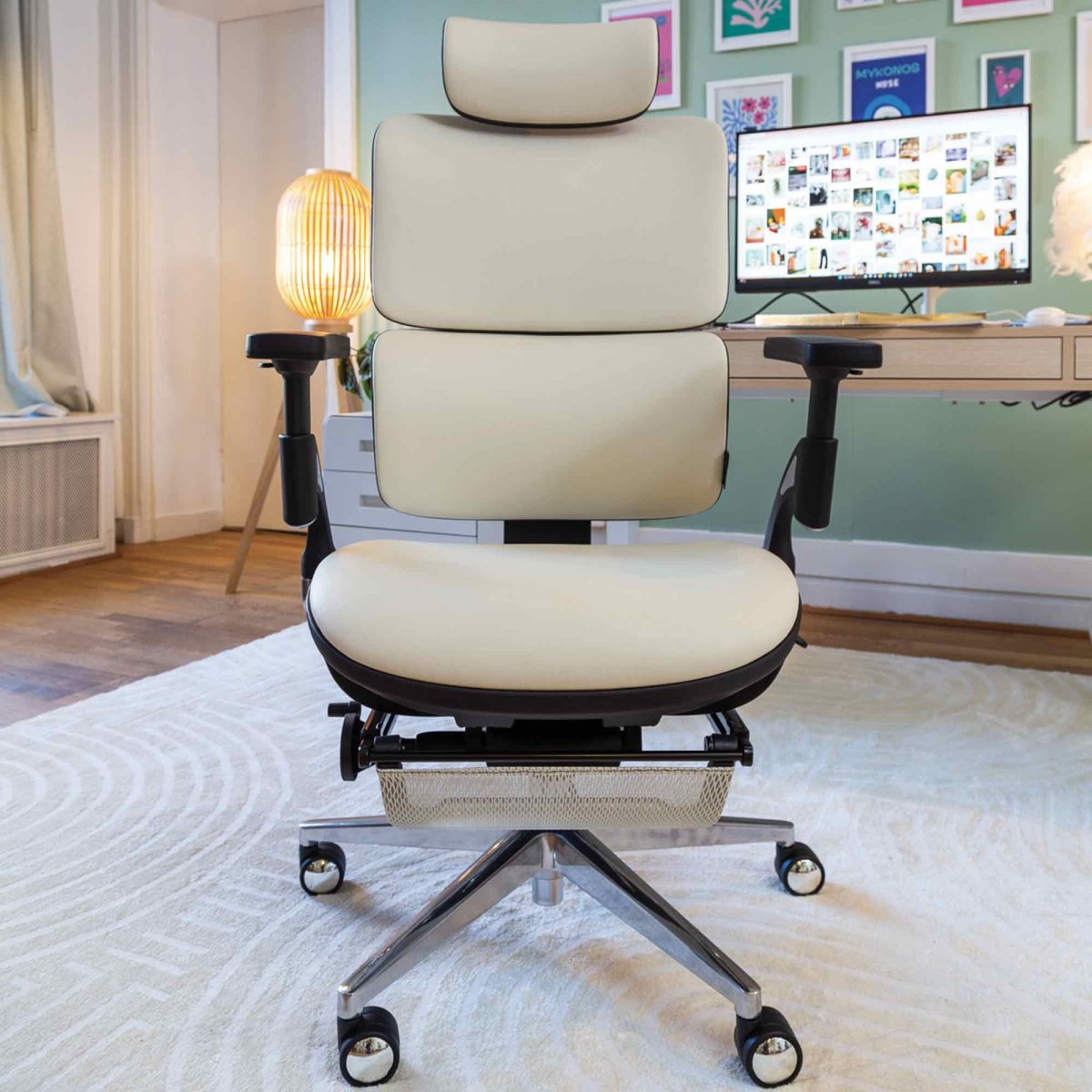 La KQUEO Terrana Premium avec revêtement en cuir reconstitué combine élégance claire et ergonomie avancée. Son revêtement blanc chic, ses réglages complets et son confort haute densité en font un choix idéal pour un bureau raffiné. Le dossier suit la colonne en S, les accoudoirs et appuie-tête s’ajustent selon votre morphologie, et le tout repose sur une mécanique de bascule fluide. Parfait pour allier bien-être et style dans un cadre lumineux.