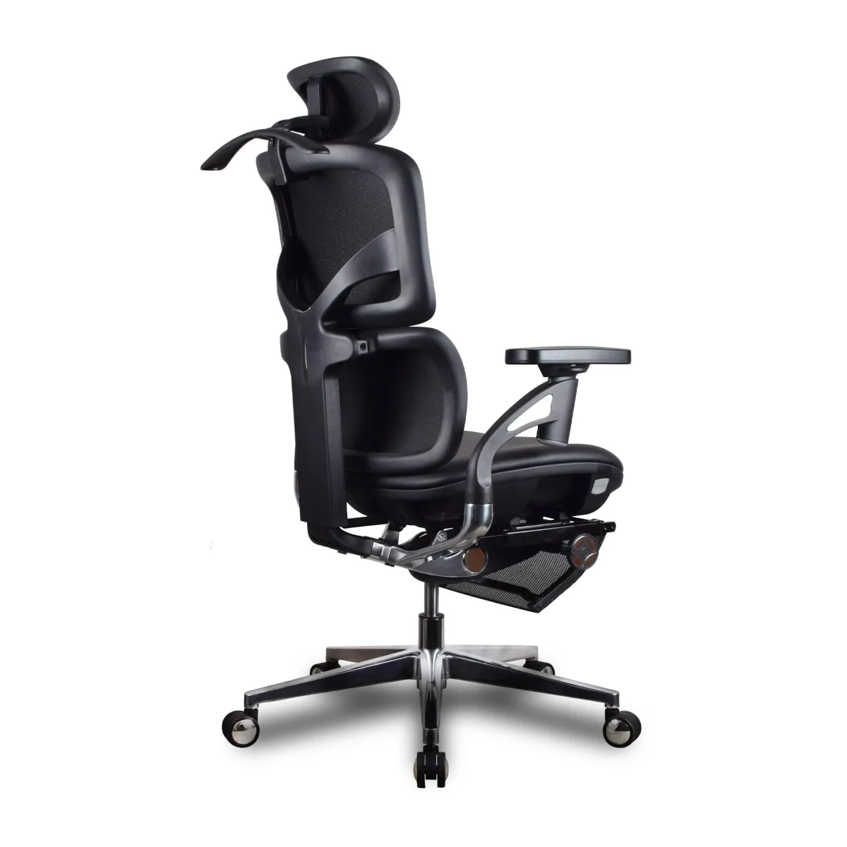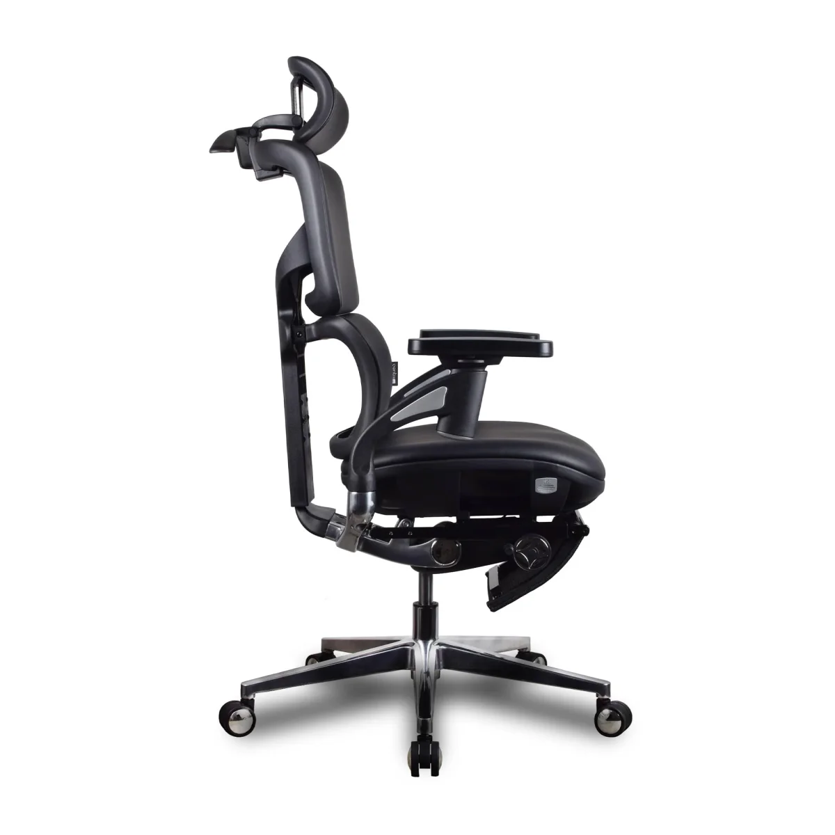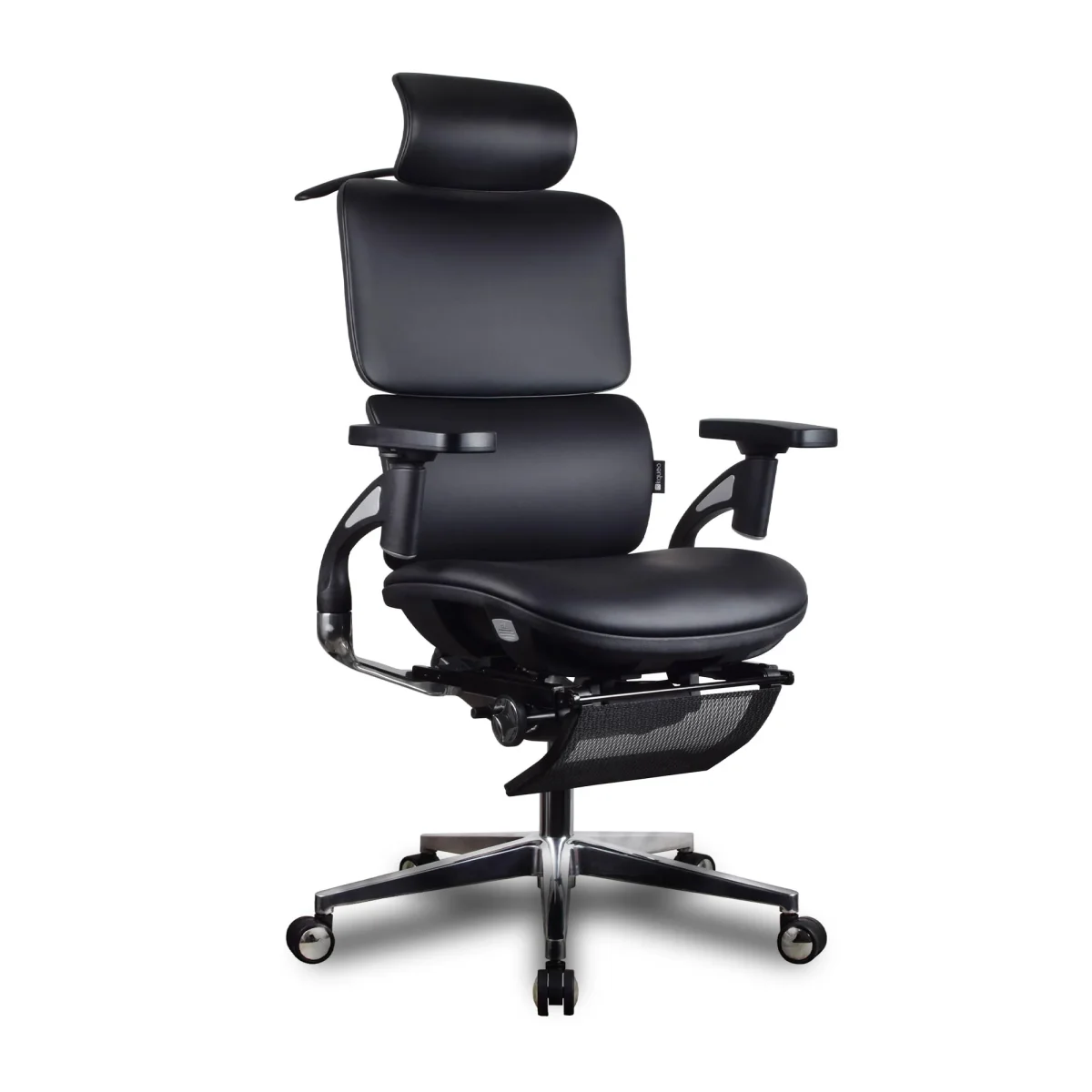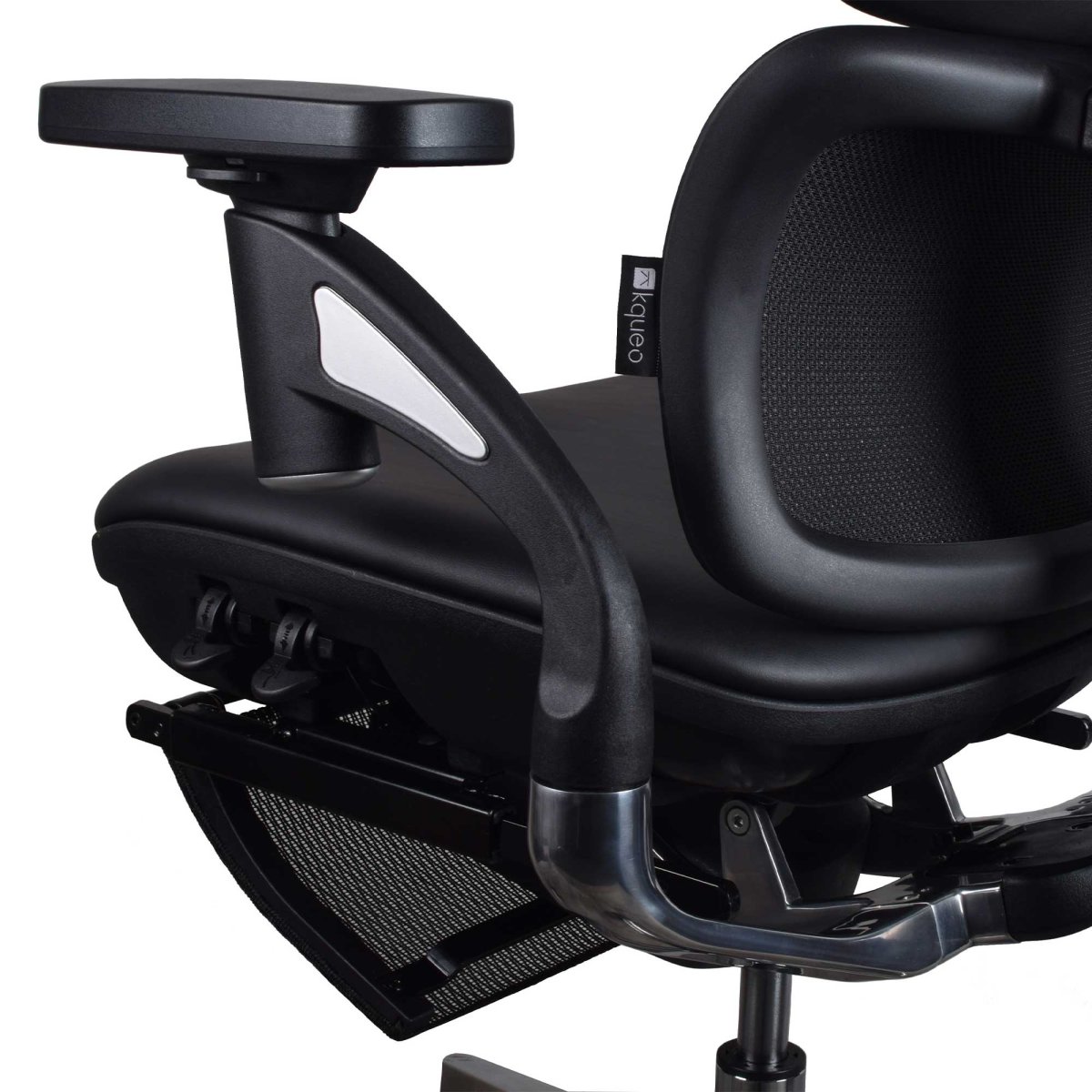 Chaise ergonomique KQUEO Terrana Premium noire, cuir reconstitué, dossier ajustable, assise mousse 55 kg/m³, accoudoirs rotatifs, appuie-tête 6D, style exécutif.