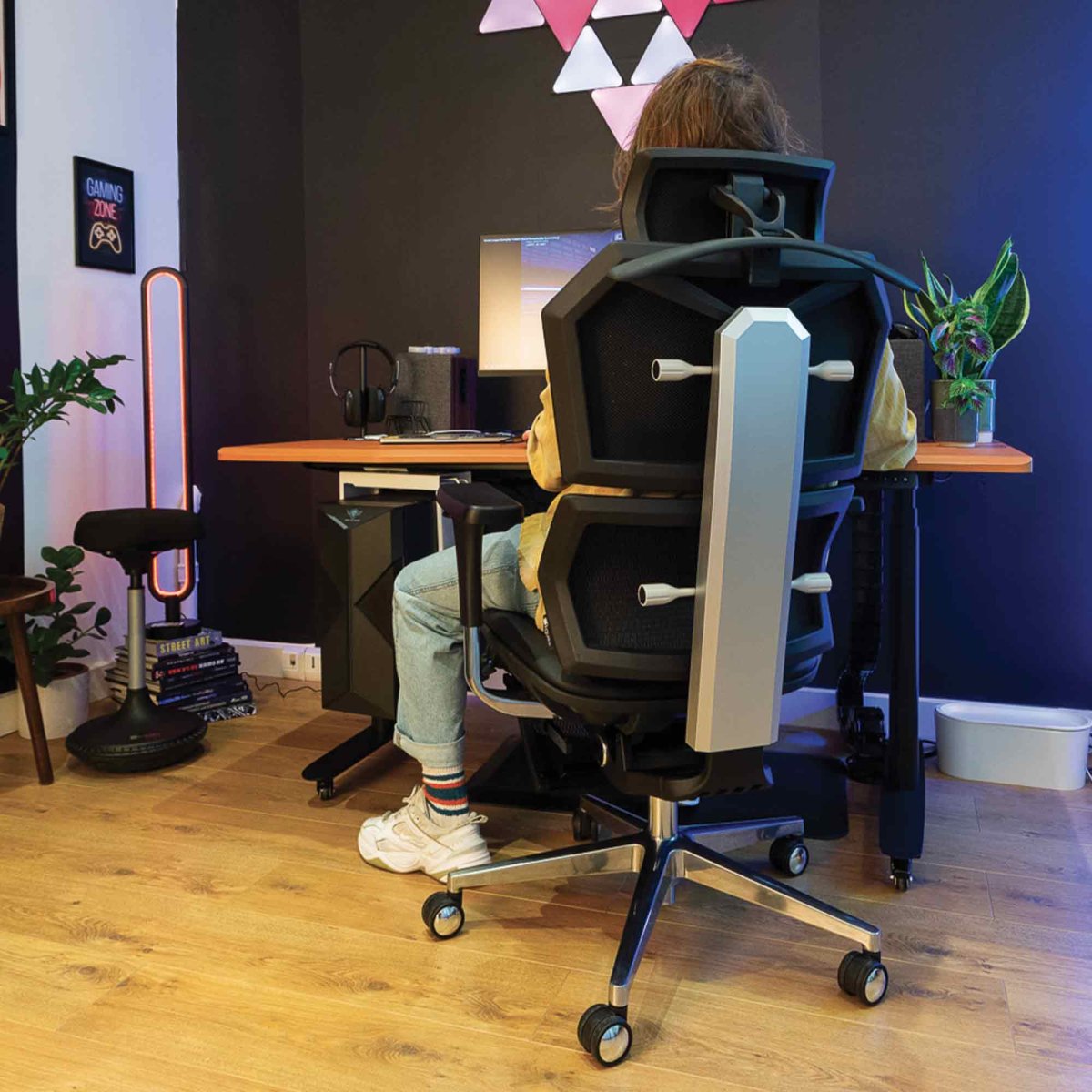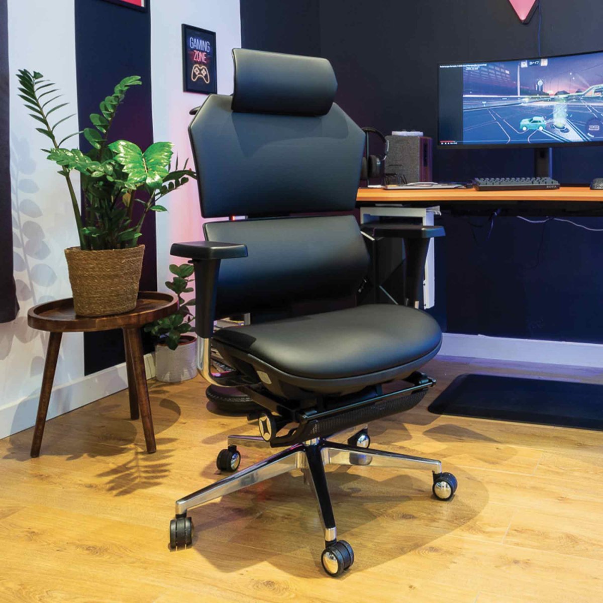 Le fauteuil Vertex en cuir reconstitué mise sur un design affirmé et un confort luxueux. Le dossier ergonomique à deux zones réglables épouse la forme du dos pour un soutien idéal, renforcé par un appuie-tête réglable sur 6 directions. L’assise en mousse HR offre un maintien durable, tandis que le revêtement en cuir reconstitué ajoute une touche d’élégance. Inclinaison 140°, réglages multiples, repose-pied dépliable : une chaise complète, aussi stylée qu’ergonomique.