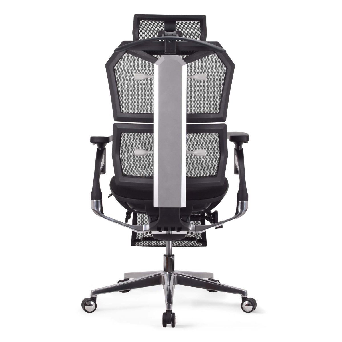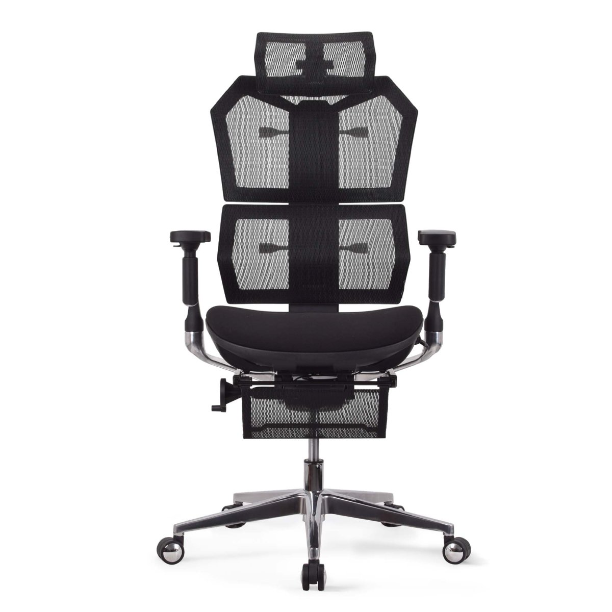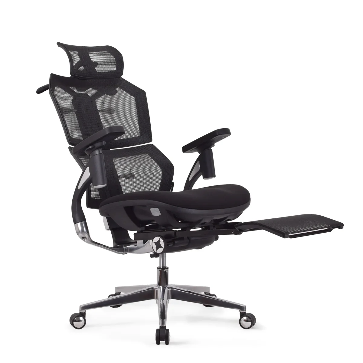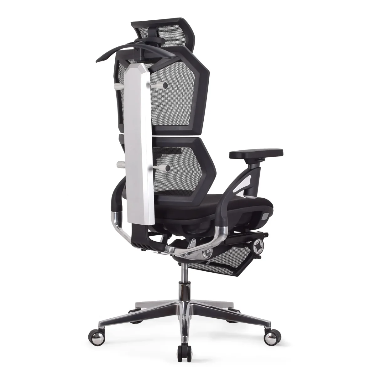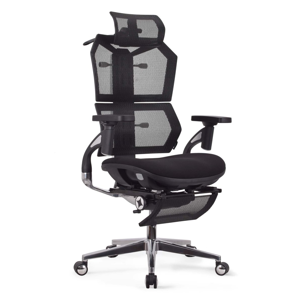 Chaise ergonomique de bureau KQUEO Vertex Premium, revêtement maille respirante, mousse haute densité, dossier bi-modules ajustables, accoudoirs 4D, appuie-tête 6 directions, repose-pied intégré, mécanisme synchrone en aluminium.