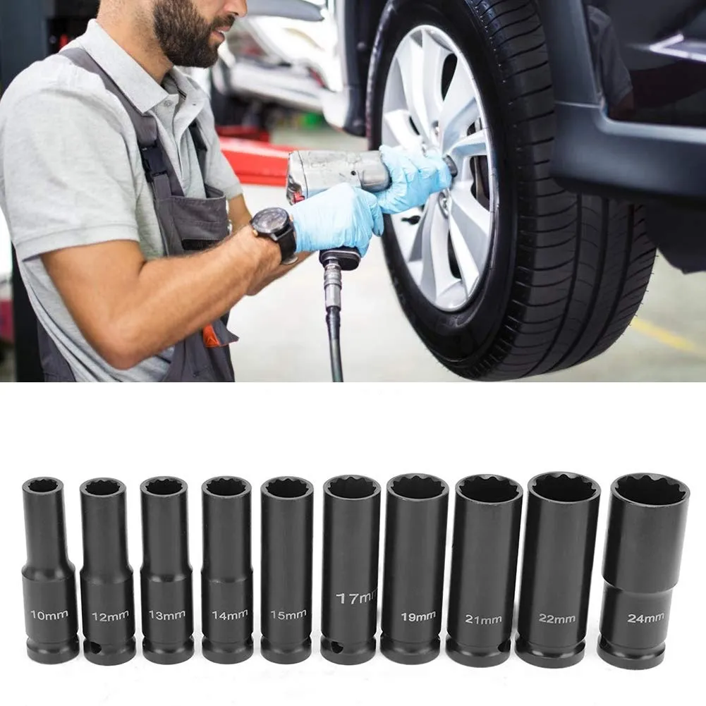 Coffret douilles longues a choc 10 Pièces. 1/2″ 10-24 mm