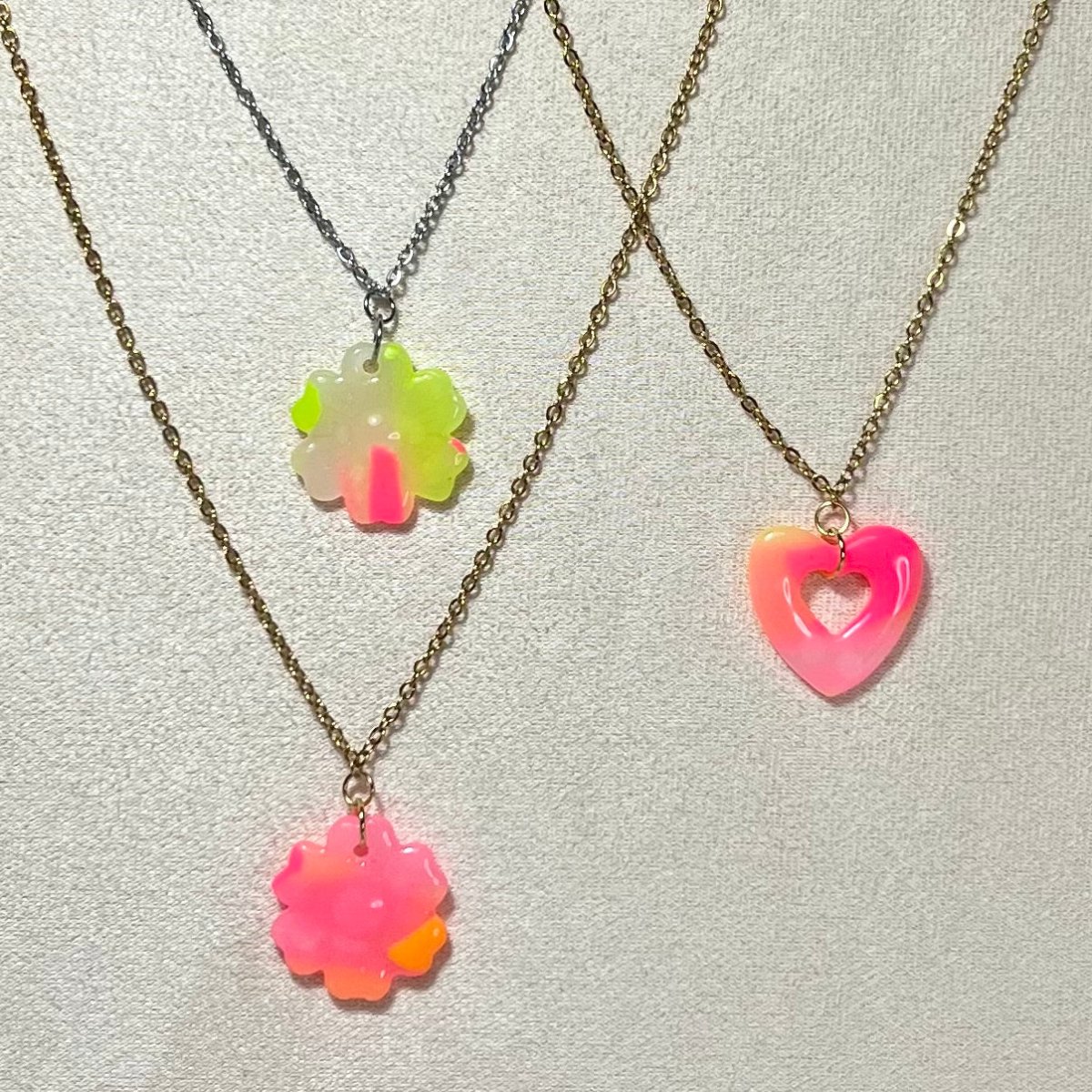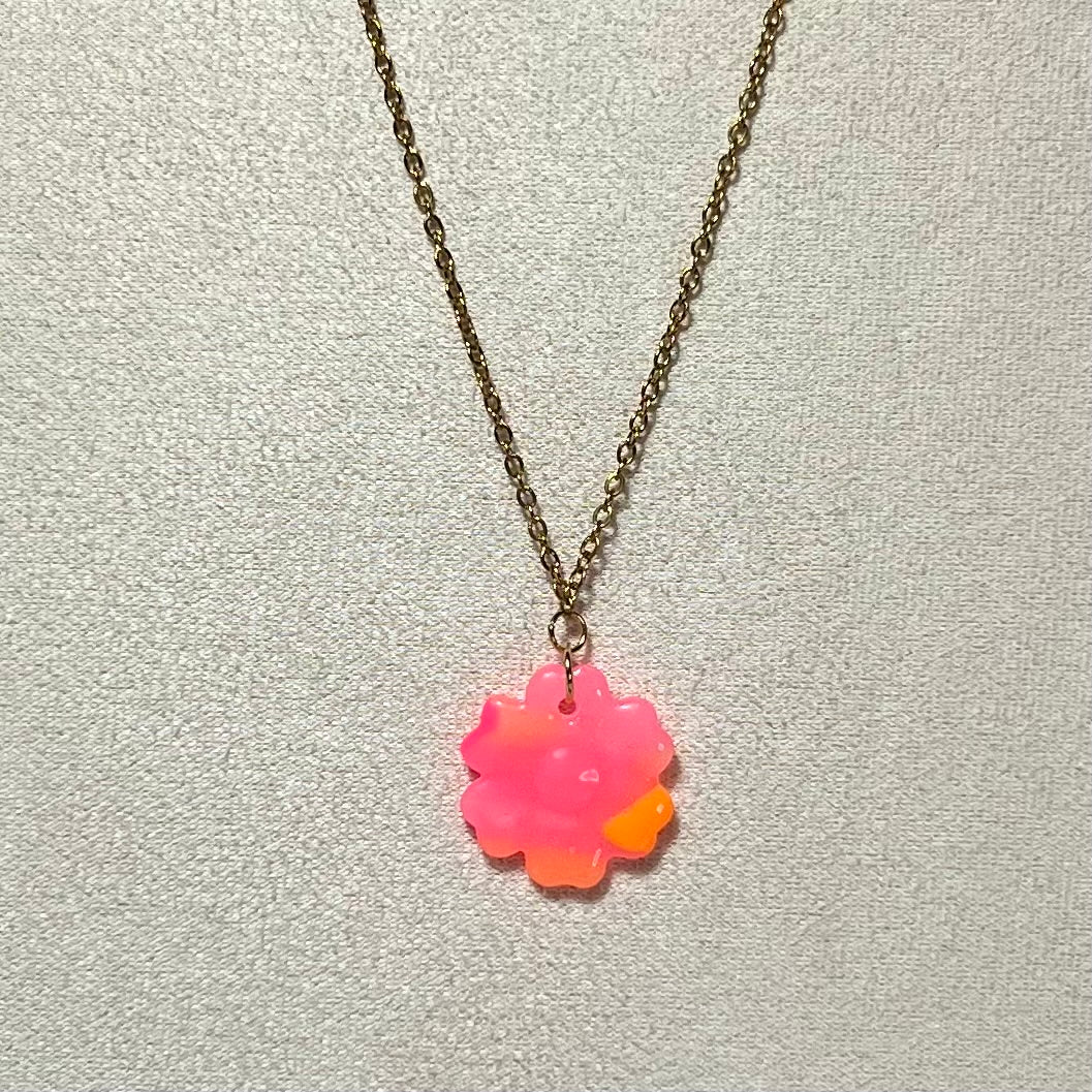 Collier Fluo – Acier inoxydable & pâte polymère | Fleur ou Cœur translucide fluo