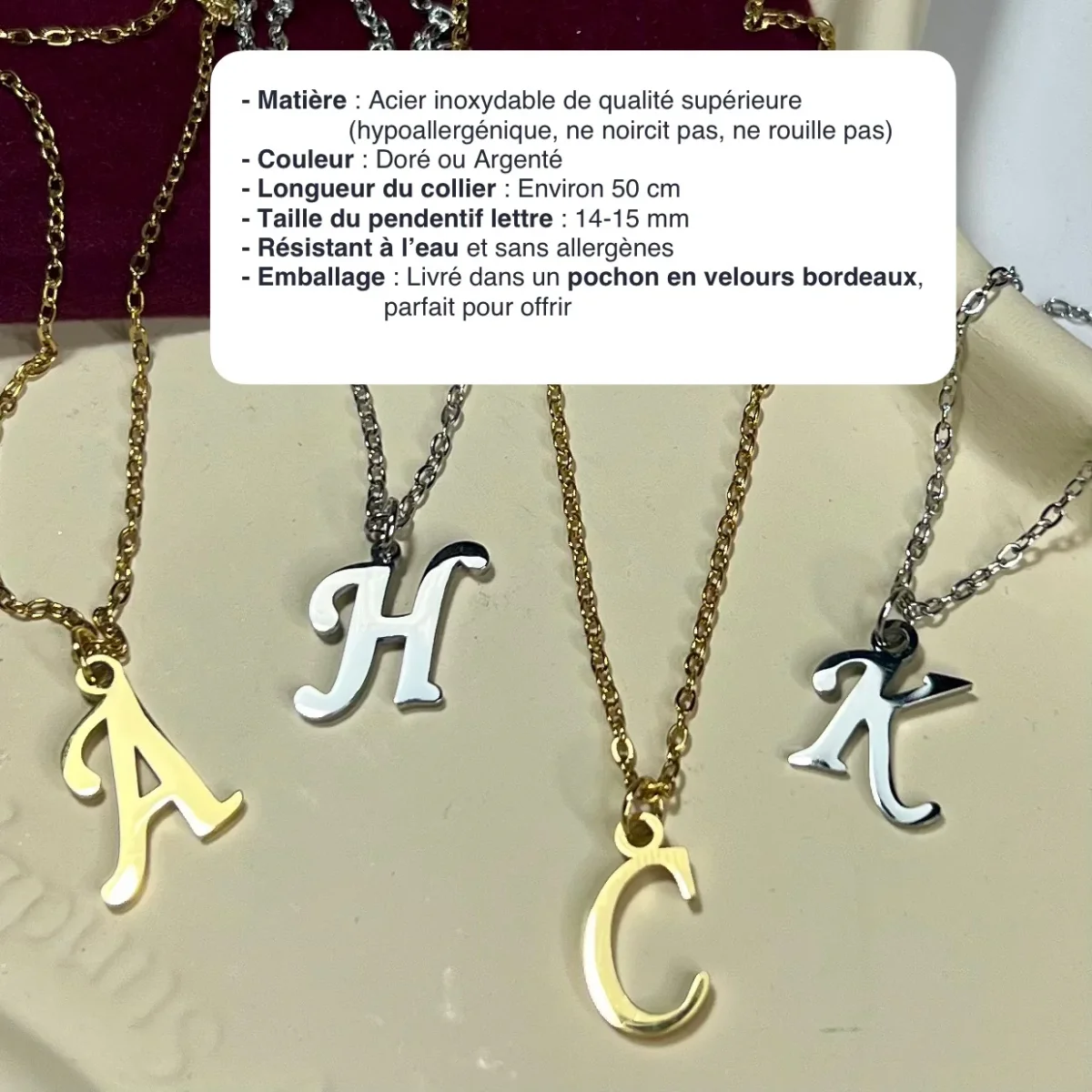 Exprimez votre personnalité ou déclarez votre amour avec notre collier “Lettre Initiale” en acier inoxydable, un bijou intemporel à prix tout doux 💌.