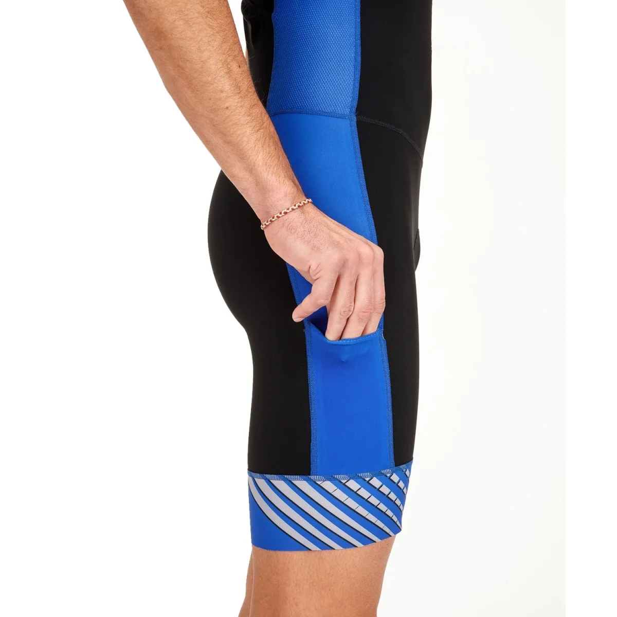 - 4 Ergo pockets : 2 grandes poches dorsales et 2 poches ergonomiques sur les cuisses pour un ravitaillement éclair lors de la partie vélo;