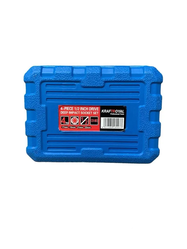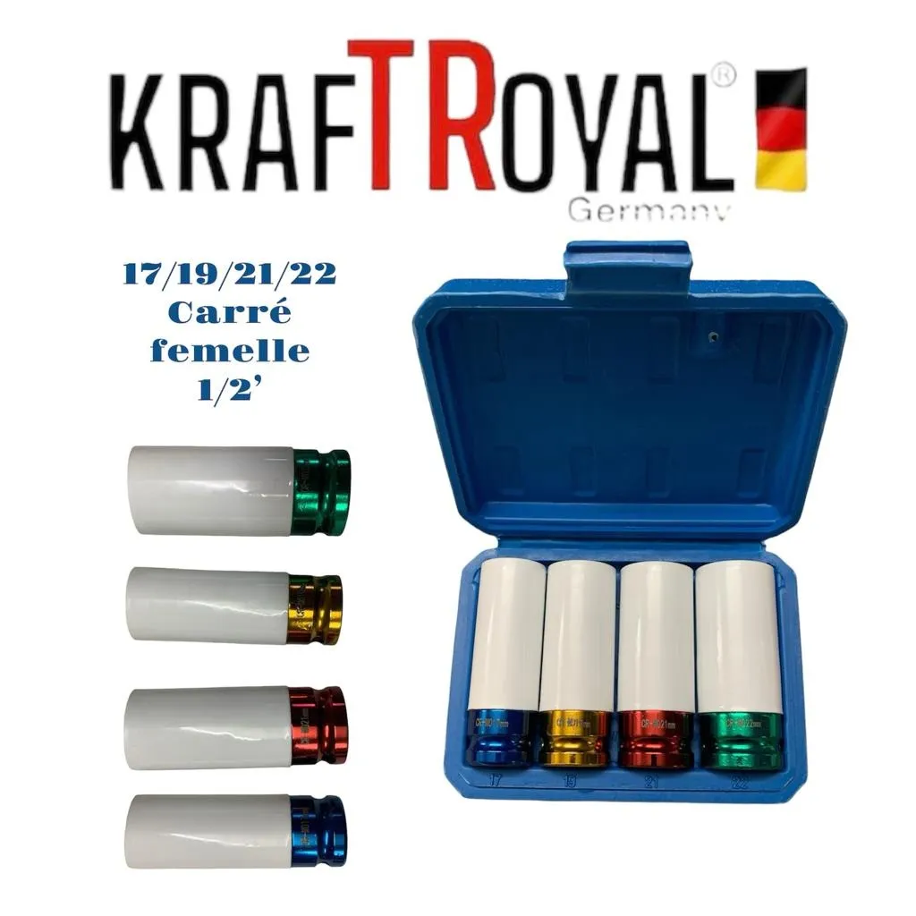 Douilles à chocs 4 pièces longues spéciales jantes aluminium 1/2″ Kraft Royal 17/19/21/22 mm en coffret