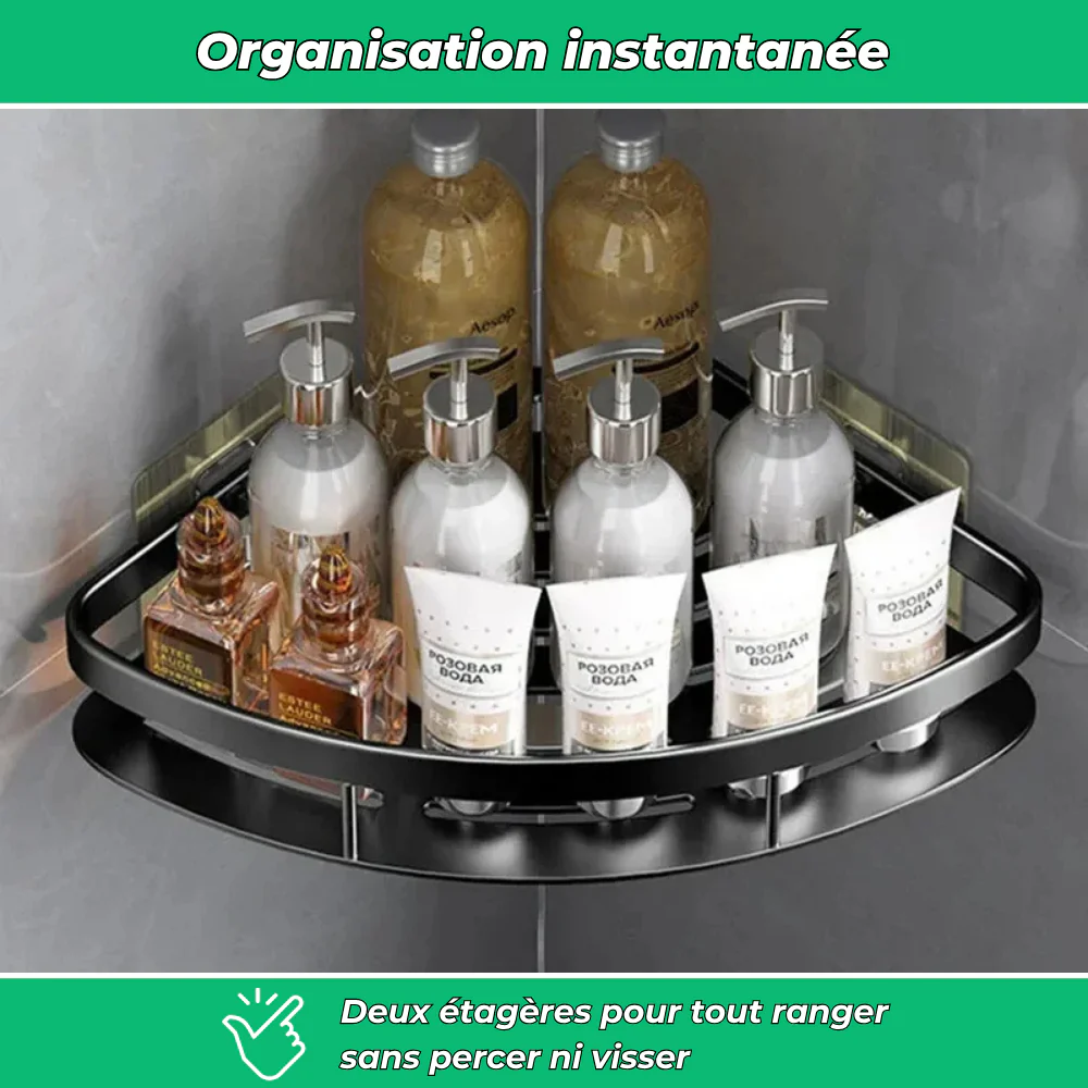 Étagères d’angle duo – Rangement pratique et sans perçage (Lot de 2)