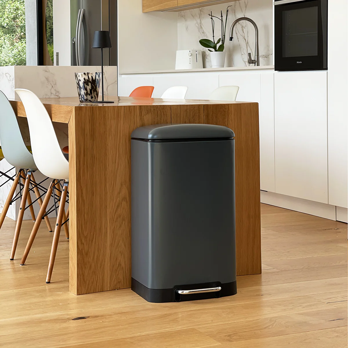 La poubelle à pédale 30L FOREST de Kitchen Move marie élégance contemporaine et chaleur naturelle grâce à sa finition noir mat et son couvercle en bambou clair. Parfaite pour une cuisine design, une salle de bain ou un bureau, elle allie praticité et style. Son mécanisme à pédale solide permet une ouverture fluide et sans contact pour une utilisation plus hygiénique. Le couvercle à fermeture ralentie se referme en douceur, sans bruit. Le seau intérieur amovible facilite le retrait du sac et le nettoyage. Stable et robuste, cette poubelle est équipée d’une base antidérapante qui protège vos sols. Avec sa poignée arrière pratique, elle se déplace facilement. Dimensions : Ø29,2 × 62,5 cm