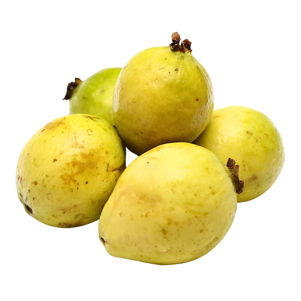 Goyave fruit tropical du goyavier avec délicat goût sucré prisé pour sa chair tendre et son parfum envoûtant, elle offre des saveurs sucrées et acidulées.
