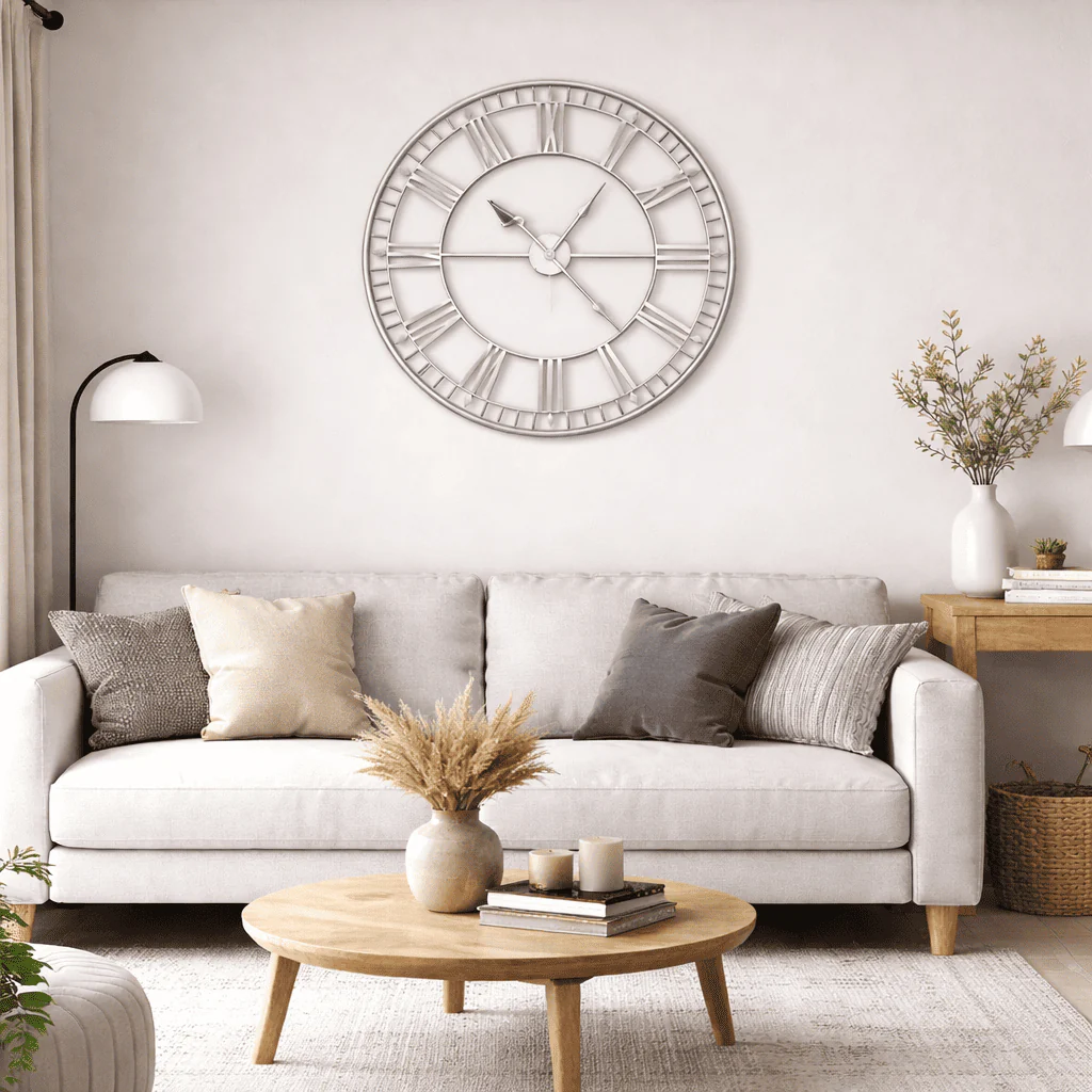 Malgré son format impressionnant, cette horloge se distingue par une discrétion absolue. Elle est équipée d’un mécanisme haute précision totalement silencieux, éliminant tout bruit de tic-tac. Vous profitez ainsi d’un grand élément décoratif sans perturber la tranquillité de votre pièce. Dans un salon spacieux, une salle à manger ou un bureau, elle permet d’habiller élégamment un mur tout en conservant une atmosphère calme et harmonieuse.