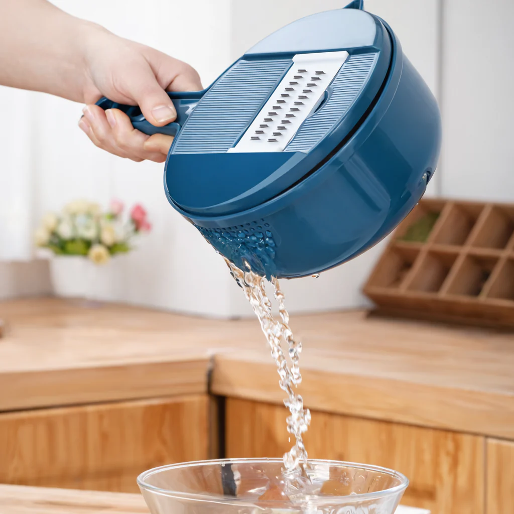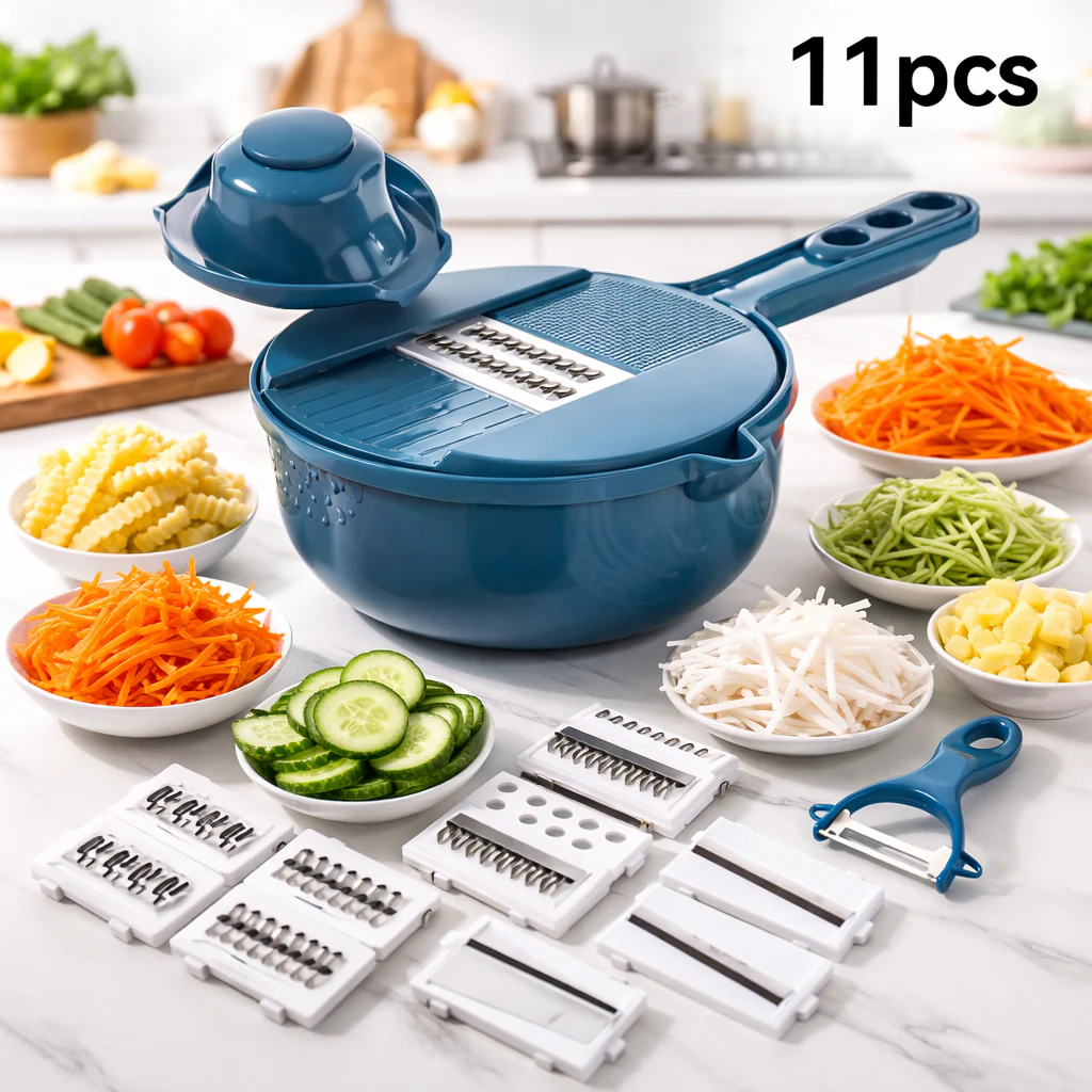 Hachoir Multifonction 12-en-1 Manuel – Coupe-Légumes, Râpe et Trancheur avec Bol