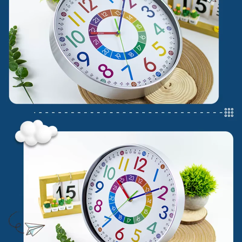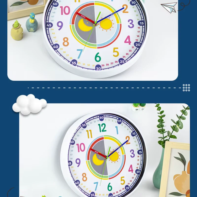 Idéale pour les salles de classe ou les chambres d’enfants, cette horloge intègre un mouvement Silent Non-Ticking. La trotteuse glisse de manière fluide, éliminant tout bruit de tic-tac qui pourrait perturber le sommeil ou les moments d’étude. Son design coloré et moderne en fait un élément de décoration aussi utile qu’esthétique pour tout intérieur.