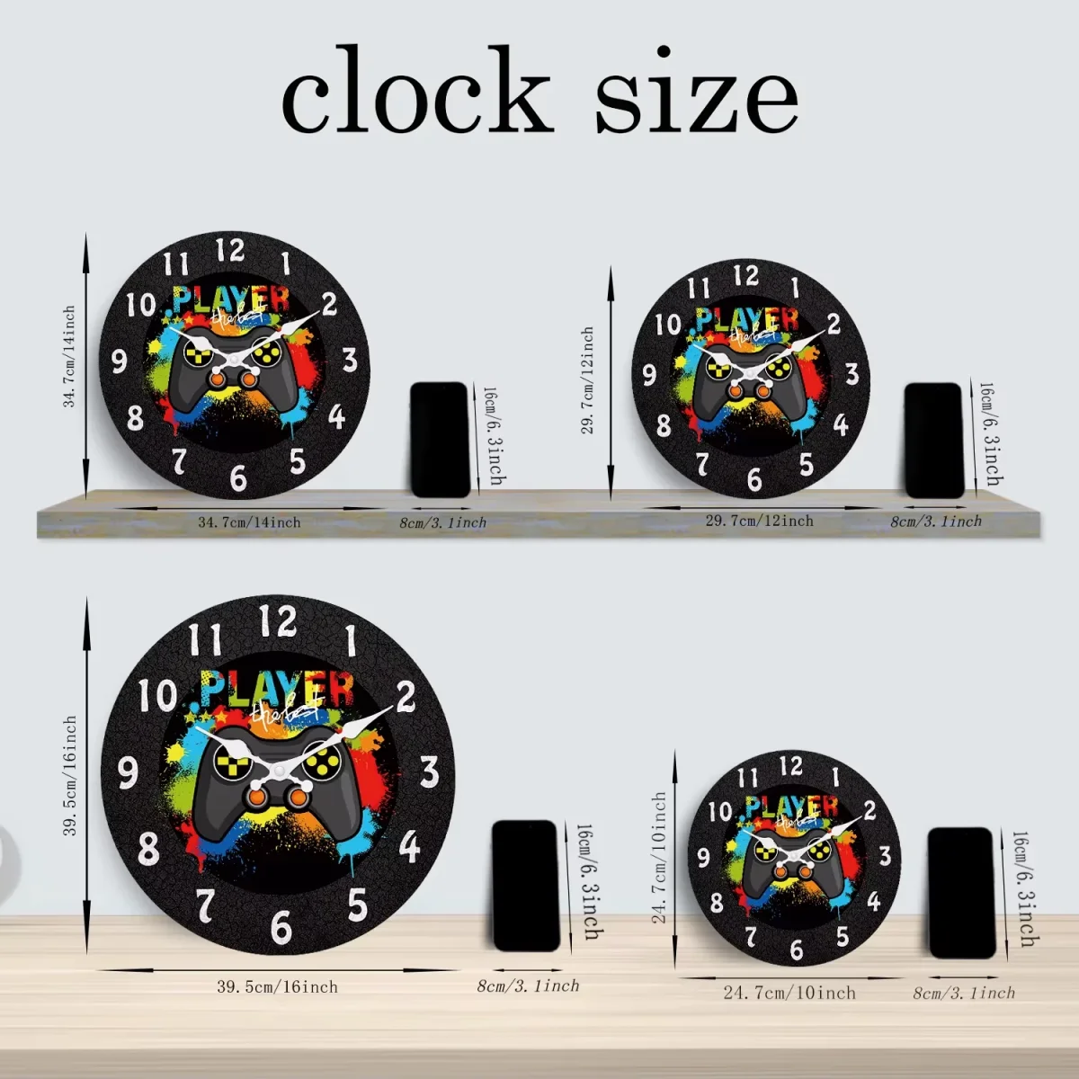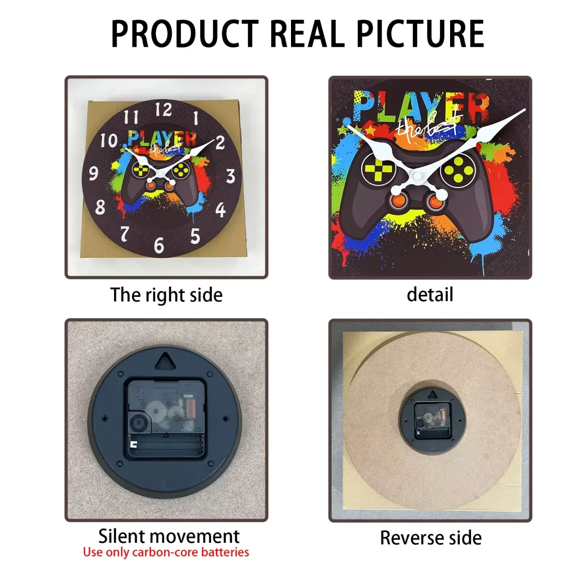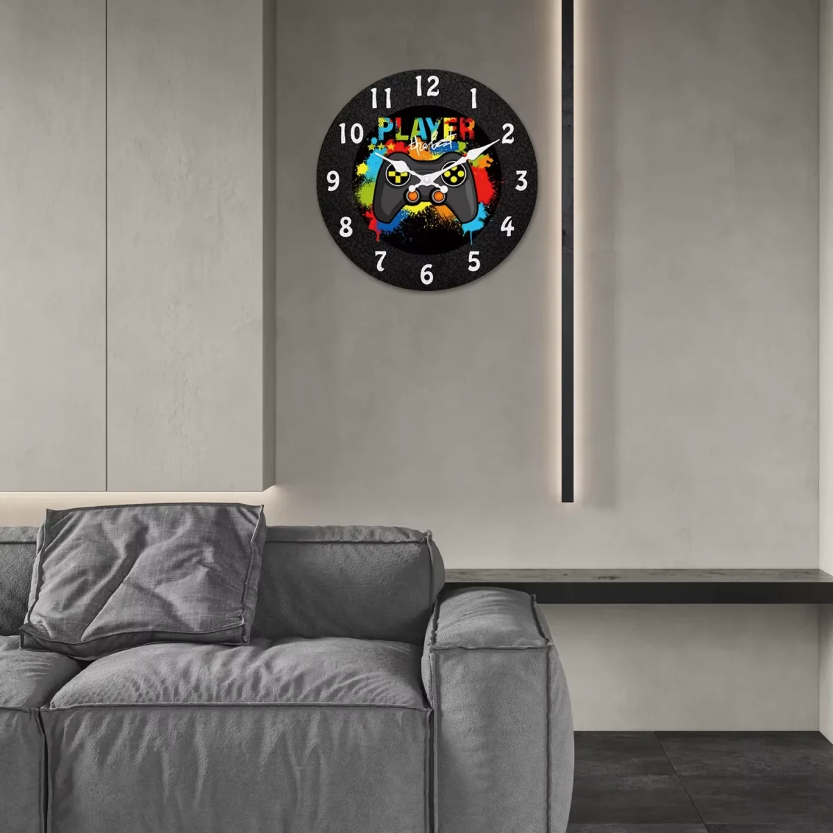 L’horloge Colorful Game Controller est l’accessoire ultime pour personnaliser votre setup. Arborant une illustration dynamique de manette sur un fond noir texturé avec des éclats de couleurs « splash », elle affiche fièrement le message « PLAYER THE BEST ». Que ce soit pour votre salon, votre chambre ou votre salle de jeux, cette horloge en bois apporte une touche de style moderne et passionnée à votre décoration intérieure.