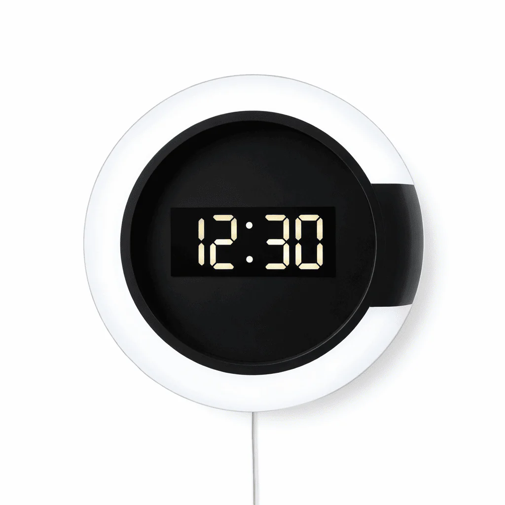 L’Aura Ring ne fait aucun compromis sur la fonctionnalité. Elle bascule intelligemment entre l’affichage de l’heure et de la température intérieure (°C/°F). Sa fonction alarme avec mode « Snooze » vous accompagne lors de vos réveils, tandis que sa pile de sauvegarde intégrée (CR2032) assure la mémoire du temps : en cas de coupure de courant, vos réglages sont conservés précieusement. Compacte et légère, elle s’installe facilement pour un effet visuel immédiat.