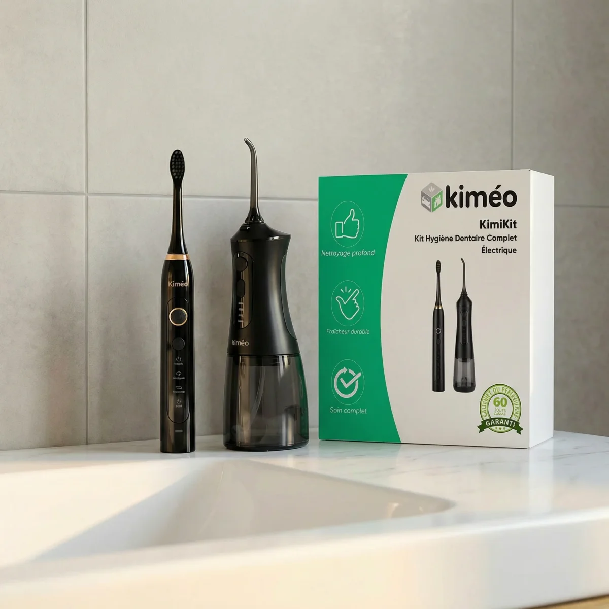 KimiKit | Kit Hygiène Dentaire Complet Électrique | Brosse à Dents Électrique & Jet Dentaire Rechargeable IPX7