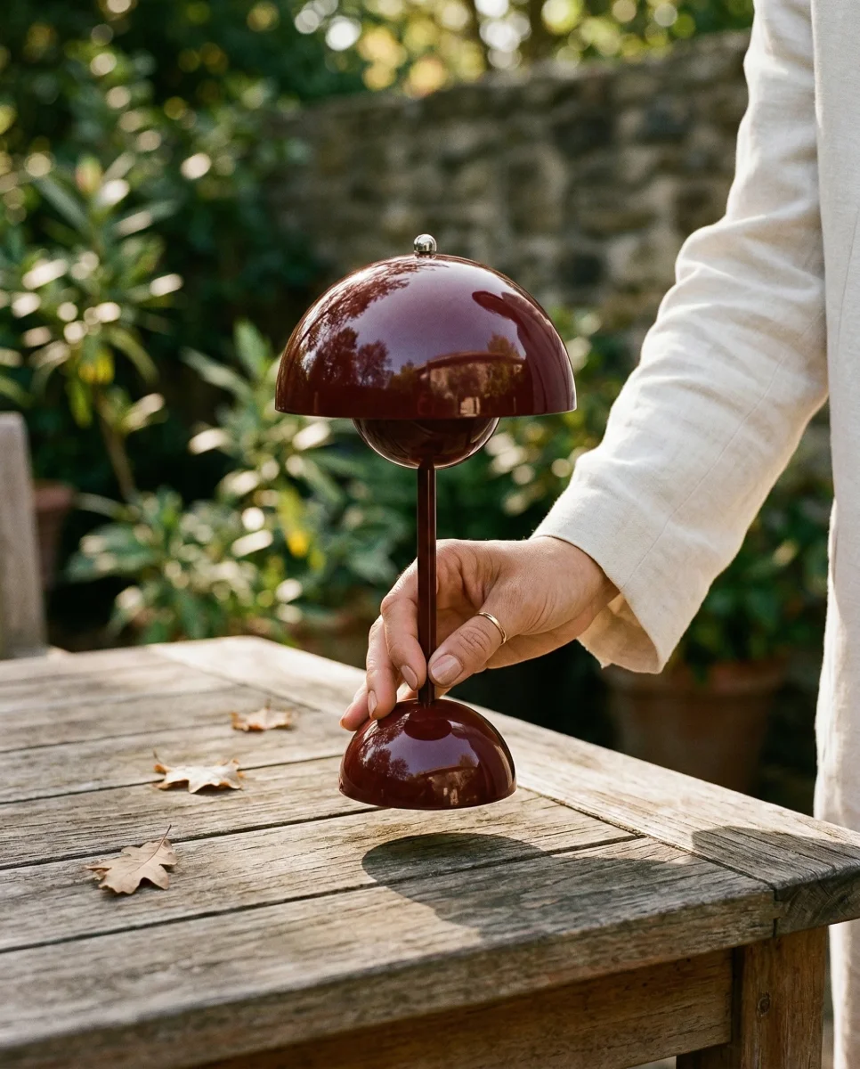 La Lampe de table Sans Fil ODEN est une icône du design, inspirée des formes organiques et ludiques. Son profil distinctif, en forme de champignon, est parfait pour ajouter une touche de gaieté et de modernité. En tant que lampe de table sans fil, ODEN offre une liberté totale de mouvement. Elle est idéale pour éclairer un bureau, un chevet ou une table d’extérieur. Elle est disponible dans une large palette de couleurs laquées.