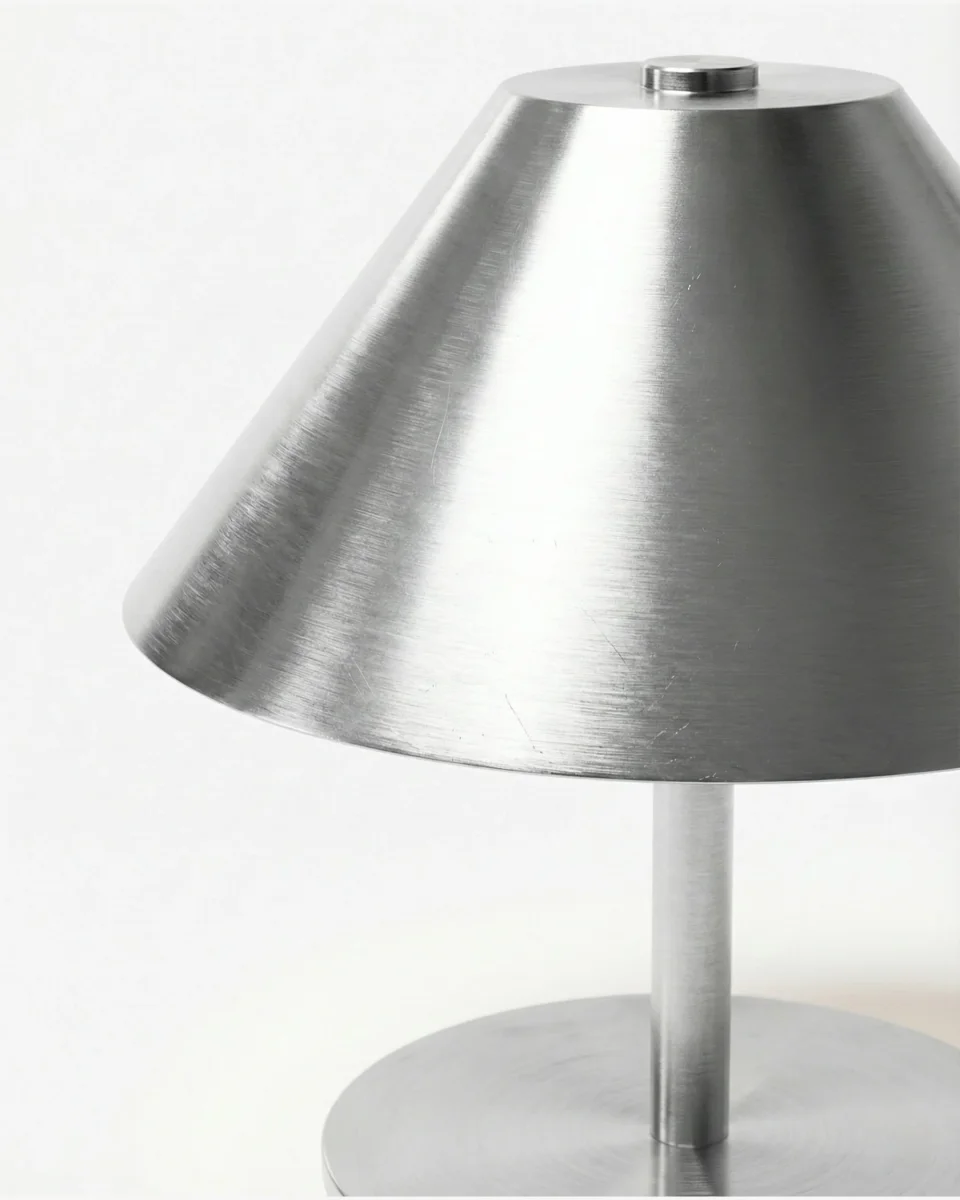 Redéfinissez l’éclairage de vos espaces avec la lampe de table VARMA. S’inspirant de la silhouette iconique des lampes « champignon », elle propose une réinterprétation moderne et angulaire en métal. Son allure minimaliste et sa conception 100 % nomade en font l’accessoire indispensable pour apporter une touche de sophistication à une bibliothèque, un bureau ou un centre de table, sans l’encombrement des câbles.