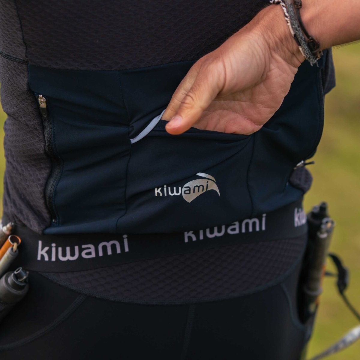 - 5 poches plaquées pour le transport de vos essentiels: ravitaillement, lampe, batterie, couverture de survie, textile additionnel. La répartition est harmonieuse sur le haut du corps et permet de ne ressentir aucune surcharge en un point précis, respectant l’équilibre en course et prévenant les blessures de posture.