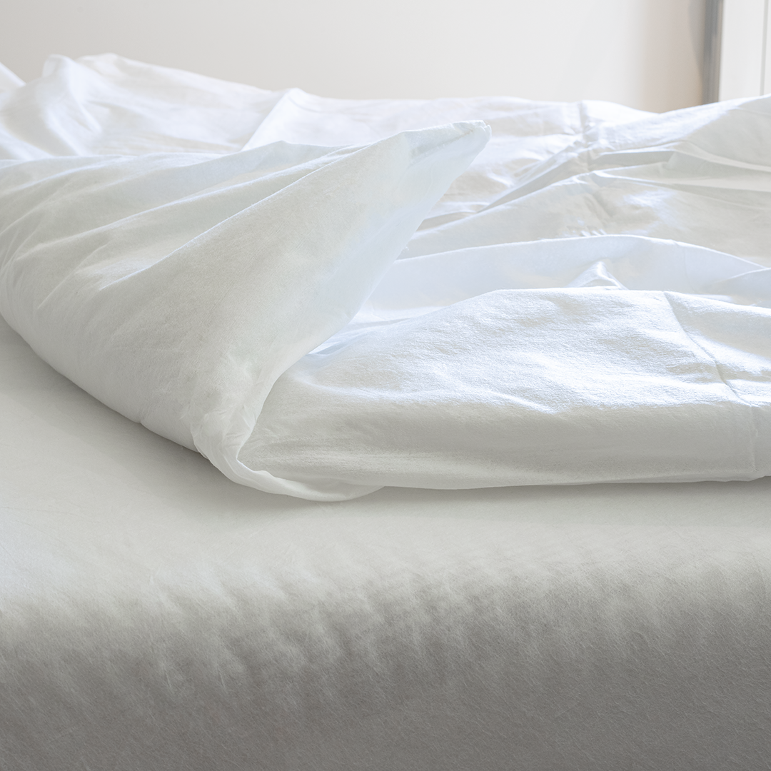 La parure housse de couette jetable confort correspond à un linge non tissé spunlace à 50g/m². Les textiles non tissés mélangent des fibres végétales ou non végétales assemblées de manière mécanique, thermique ou chimique.