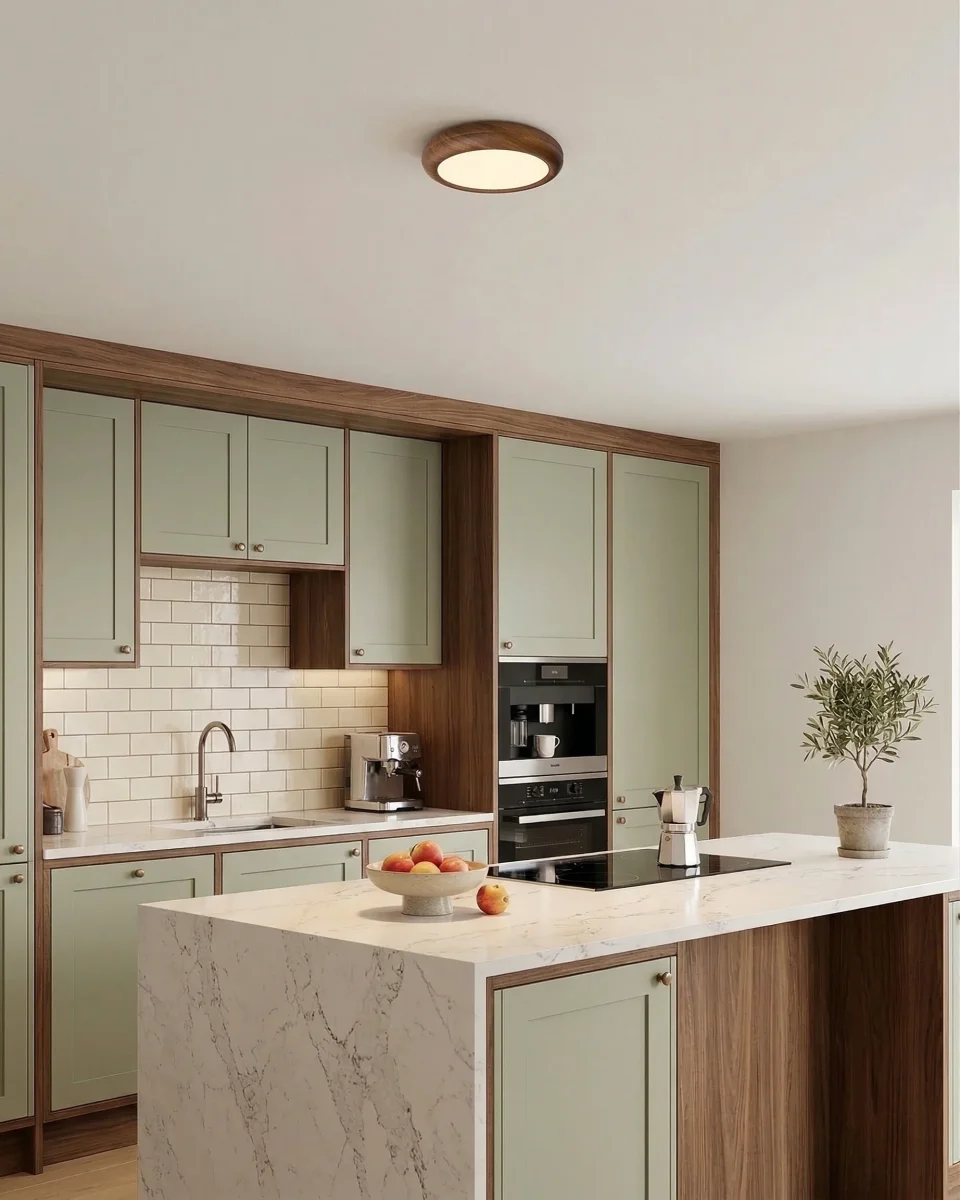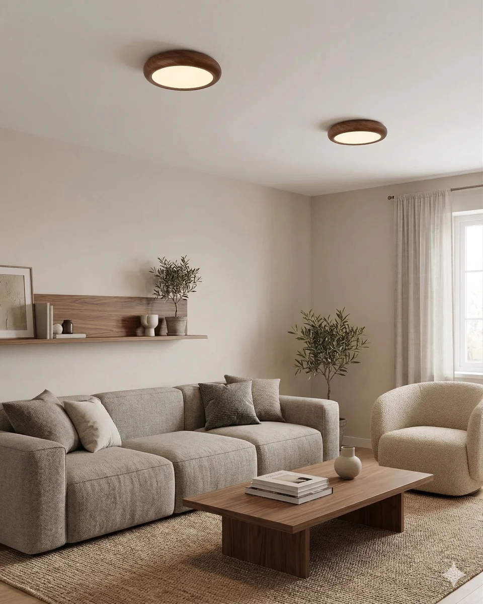 Imaginée par nos designers pour capturer l’essence de l’harmonie naturelle au zénith de vos pièces, la collection JILO joue sur la pureté des formes. Son cerclage texturé imite les fibres nobles du bois de noyer, enserrant un diffuseur blanc mat qui projette un halo indirect radieux. Cette esthétique Organic Modern s’intègre avec une grâce magistrale dans un salon contemporain, une entrée de prestige ou pour parfaire l’aura d’une suite de maître sophistiquée.