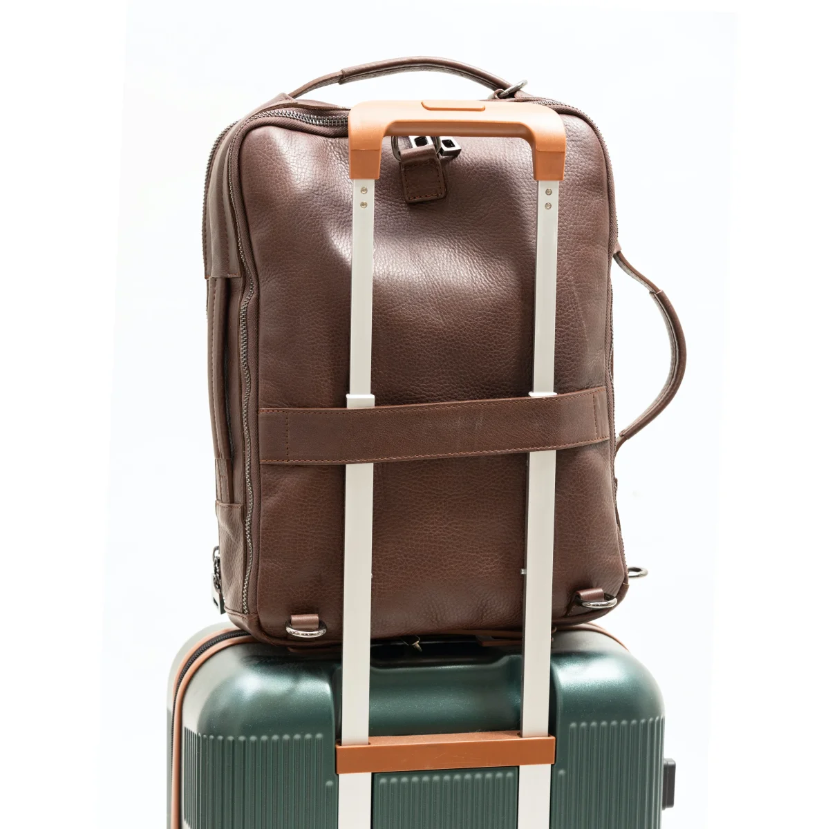 Sac à dos en cuir pleine fleur, conçu pour les professionnels et les voyageurs urbains. Doté de bretelles ergonomiques et d’une poignée supérieure, il permet un double portage selon vos besoins. Son grand compartiment principal peut accueillir un ordinateur portable, des documents et autres essentiels, tandis que ses poches zippées latérales offrent un rangement sécurisé et pratique.