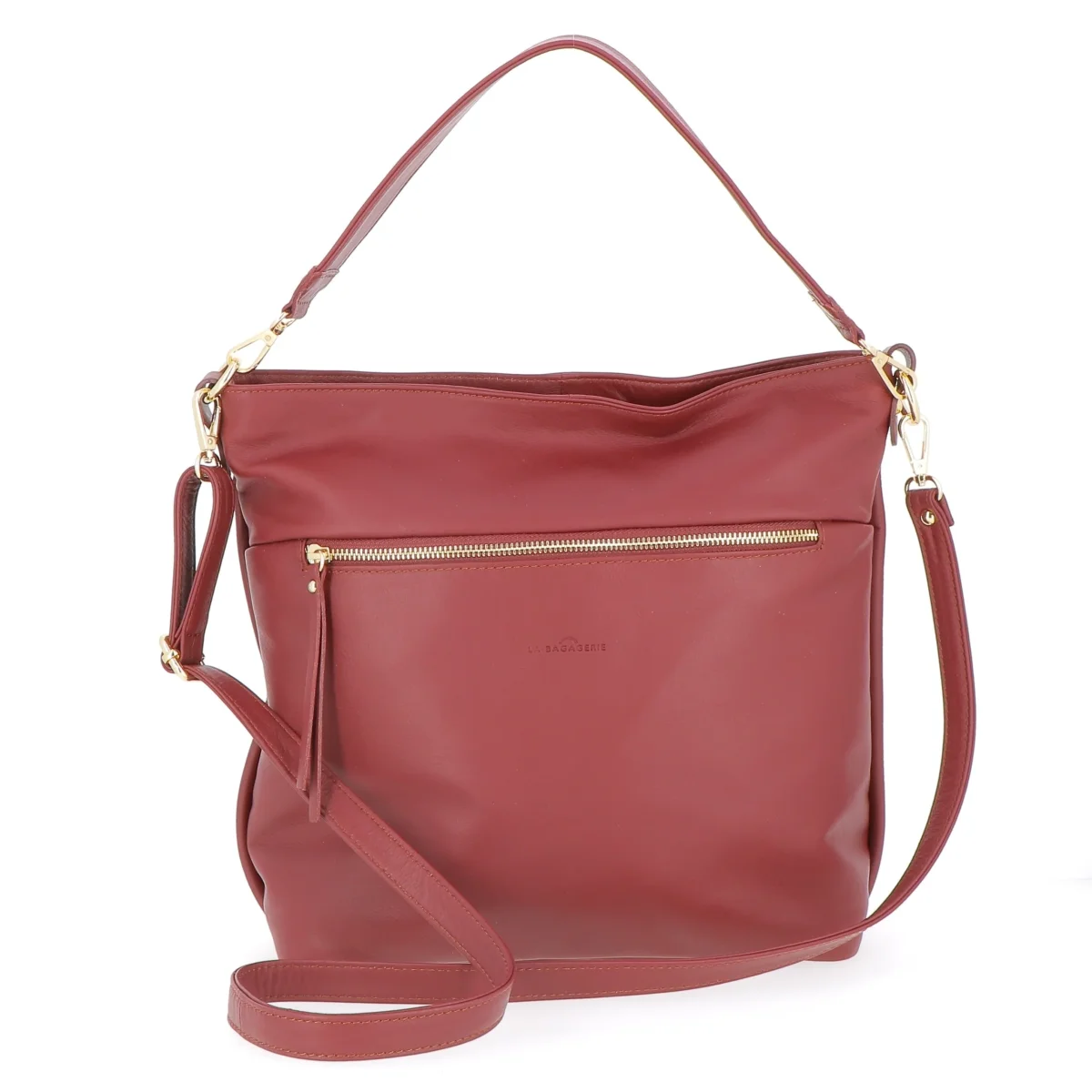 Sac en cuir de vachette lisse à double portée épaule ou bandoulière. Pratique avec sa pochette zippé au dos, et sécurisé par son zip sur le dessus pour une utilisation quotidienne. A l’intérieur vous trouverez une poche zippée et un compartiment pour votre téléphone. Ce sac vous séduira par sa légèreté et son utilisation pratique.