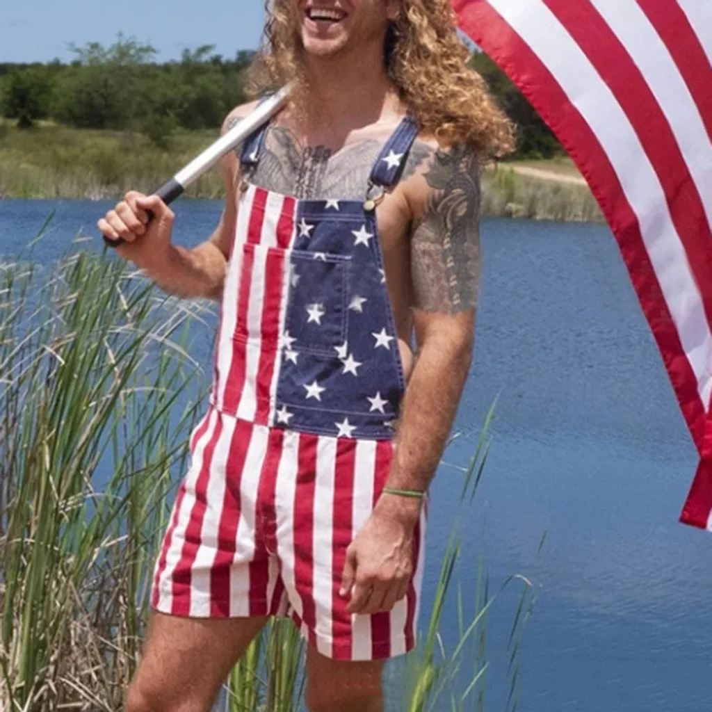 Salopette Drapeau Américain – Tenue d’Été Fun pour Homme
