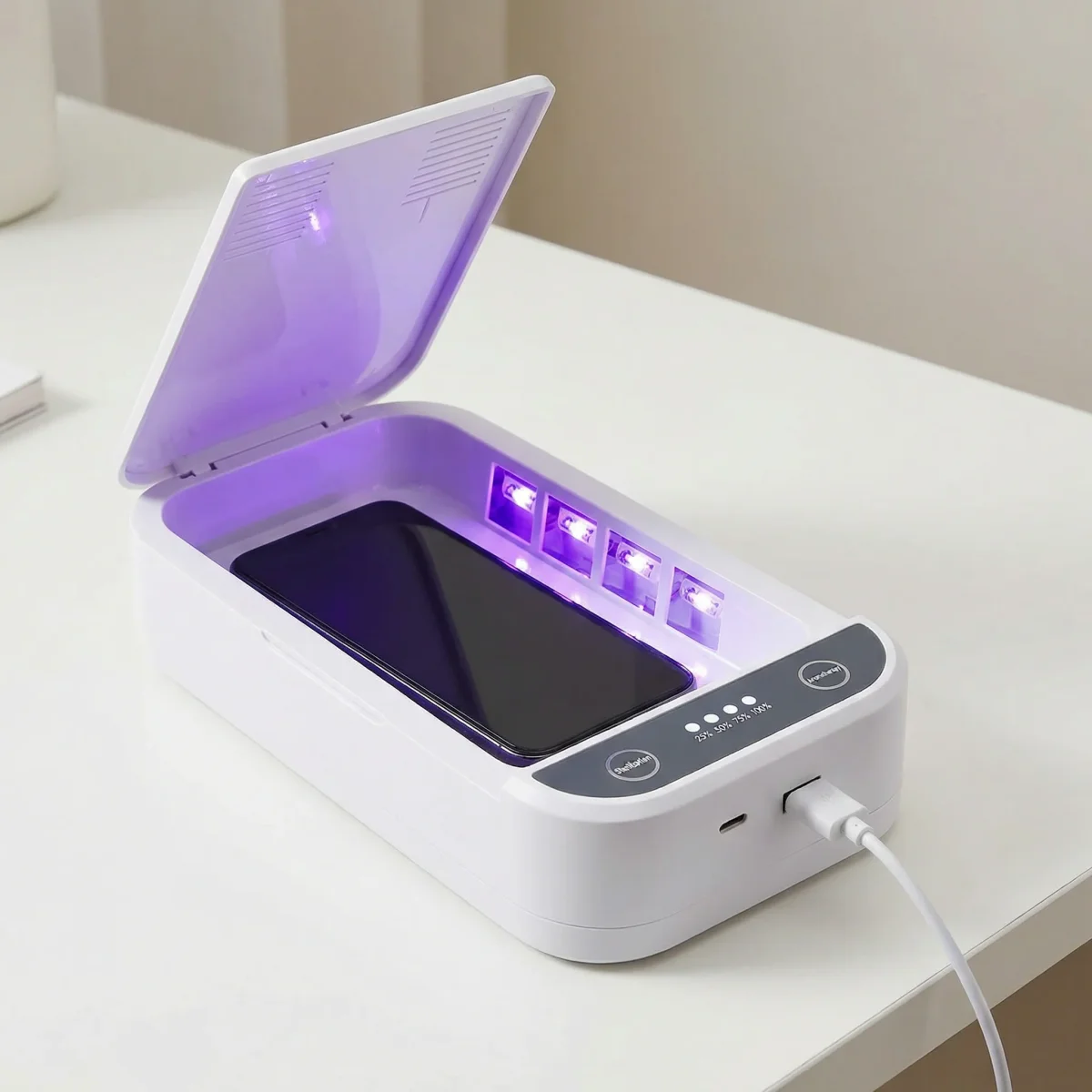 Stérilisateur UV Portable pour Téléphone, Masques, Bijoux Désinfection Rapide Boîte Antibactérienne Rechargeable