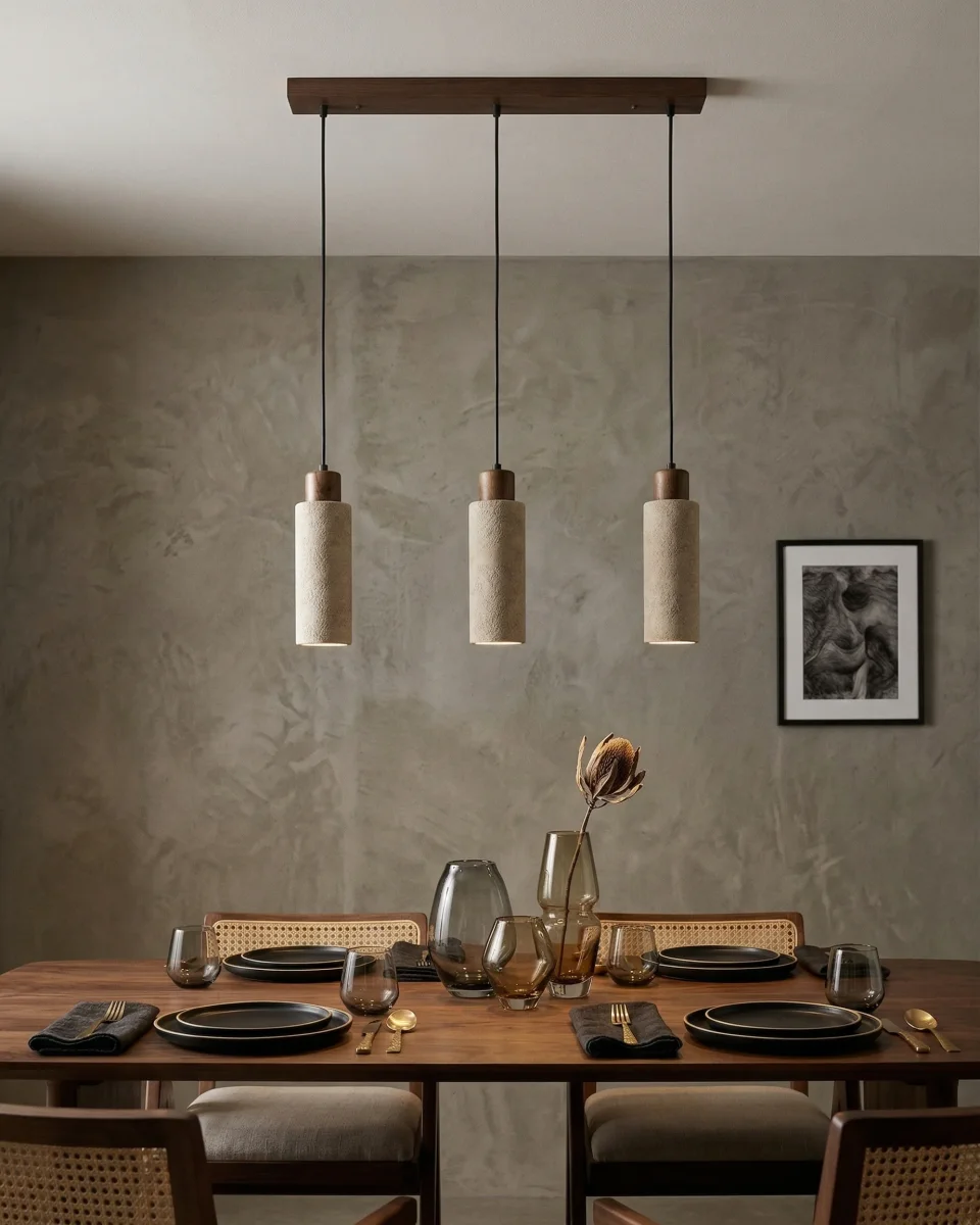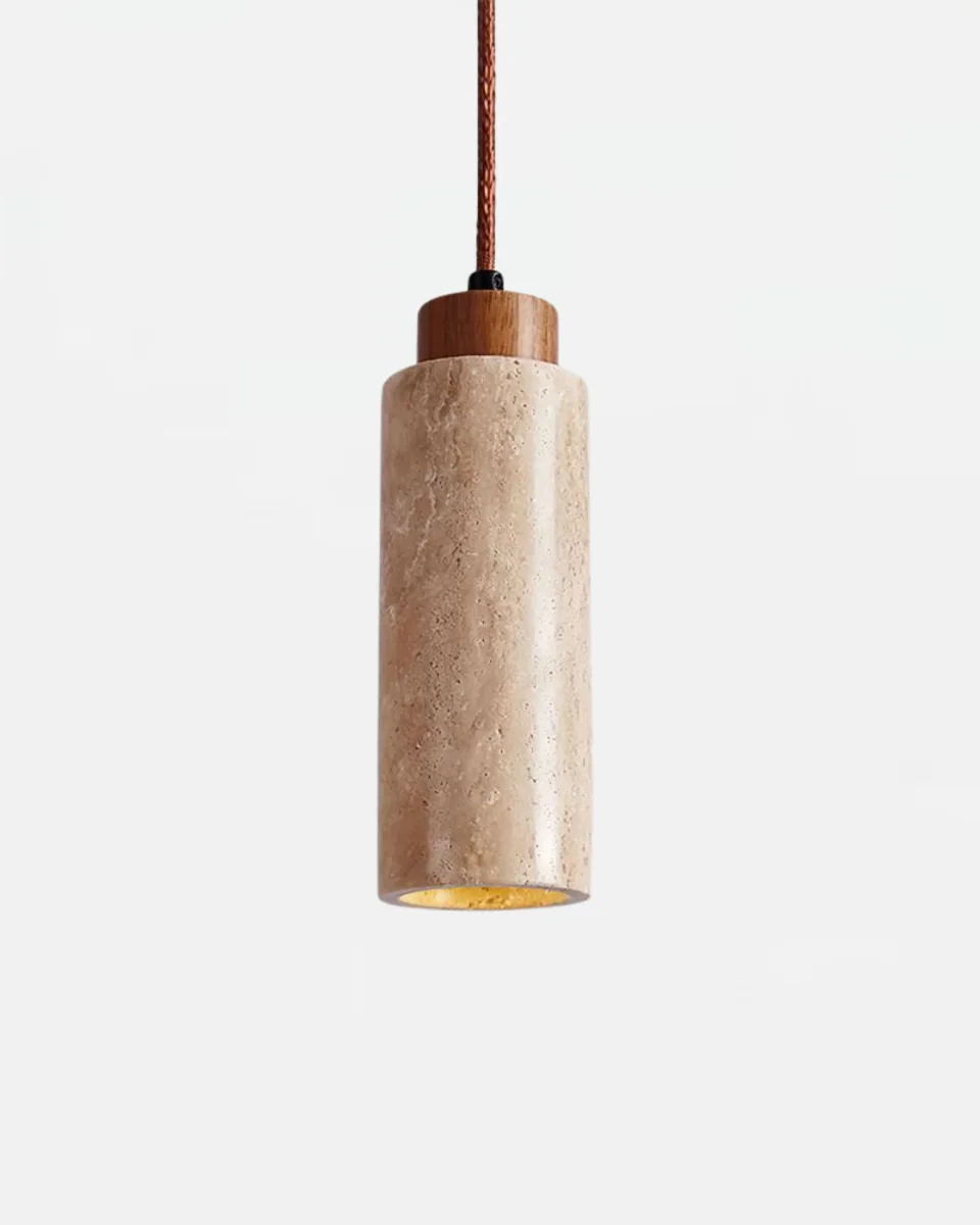 Suspension ERIA : L’Équilibre Sculptural du Travertin et du Noyer Massif
