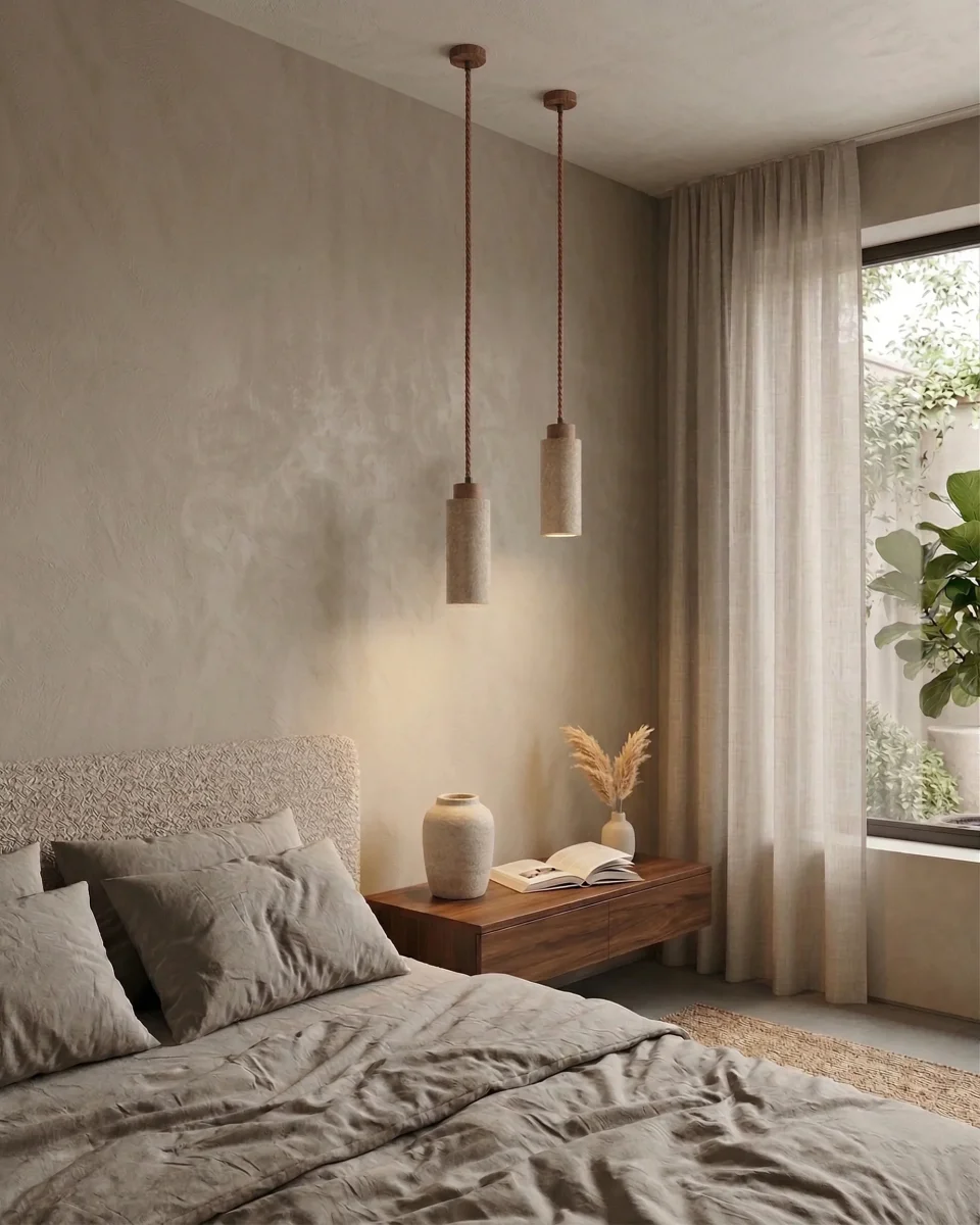 Imaginée par nos designers pour transformer la perception des volumes, la collection ERIA joue sur les contrastes de matières nobles. L’abat-jour cylindrique en pierre naturelle révèle des veinures minérales uniques à chaque pièce, faisant de votre luminaire un objet d’art singulier. Son esthétique Wabi-sabi raffinée s’intègre avec une grâce magistrale au-dessus d’une table de chevet, ou en composition répétée pour structurer un salon moderne ou une suite de maître.