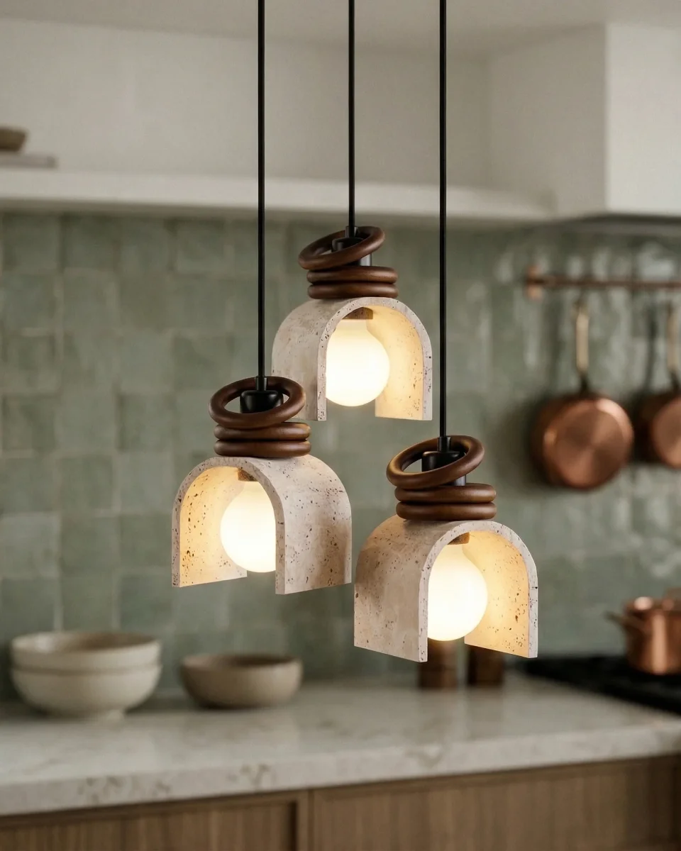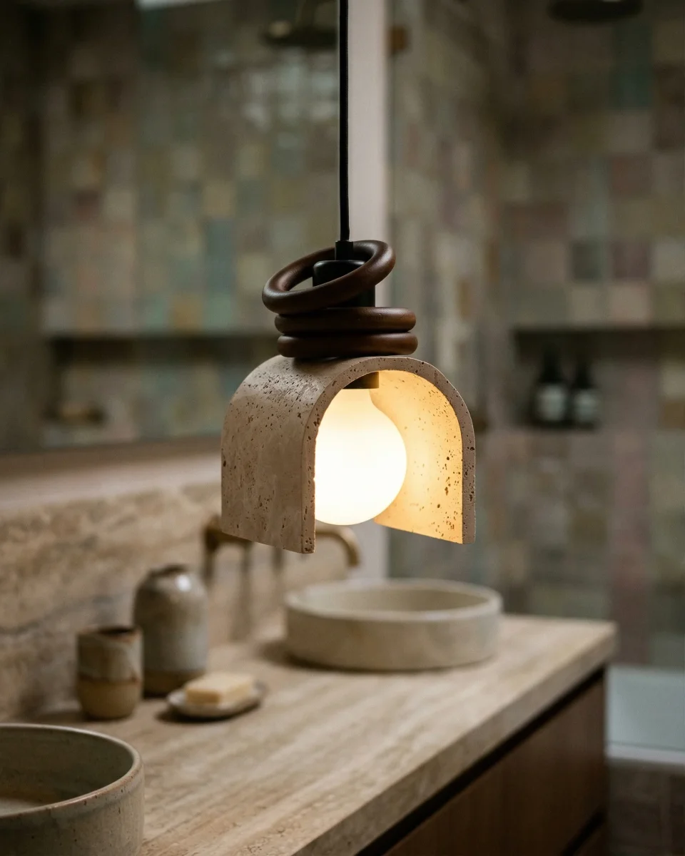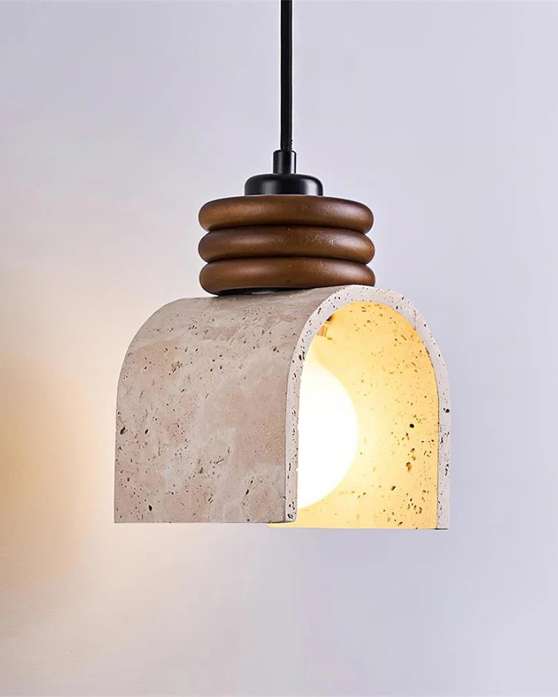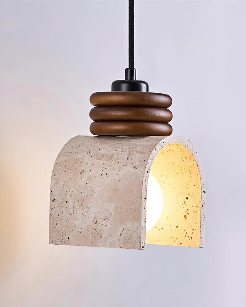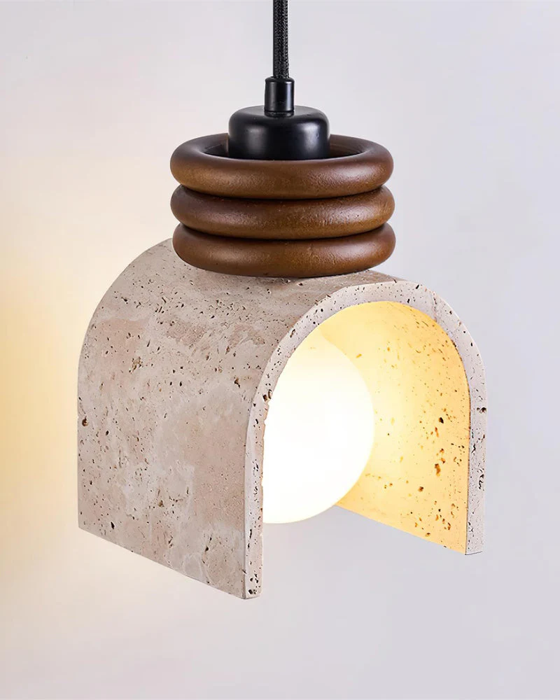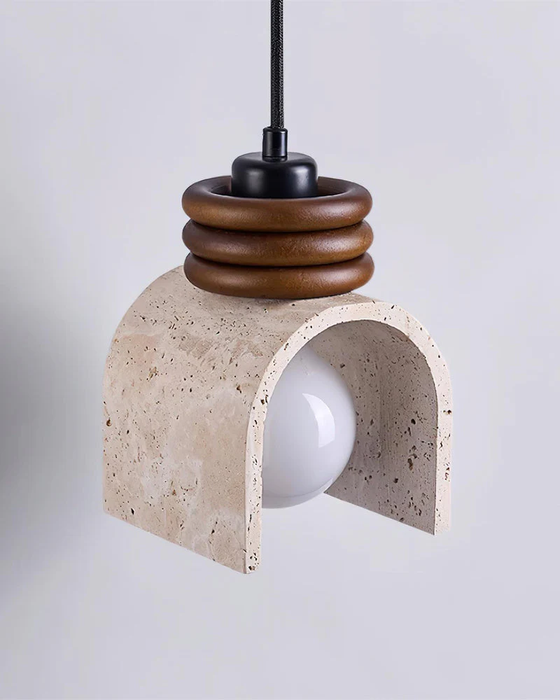 Suspension KALO : L’Harmonie Sculpturale de l’Arche en Travertin et du Noyer