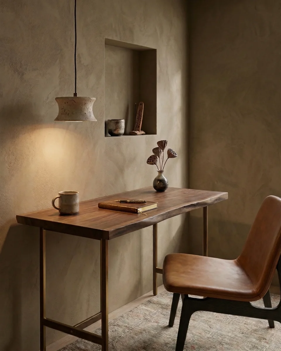 Imaginée par nos designers pour structurer l’espace avec grâce, la collection KIO joue sur les contrastes haptiques. Taillé dans la pierre millénaire, chaque abat-jour révèle des veinures minérales uniques, faisant de votre suspension une œuvre d’art singulière. Cette esthétique Wabi-sabi contemporaine, alliée à la noblesse du noyer brossé, valorise aussi bien un îlot de cuisine moderne qu’une suite de maître raffinée ou un coin lecture exclusif.