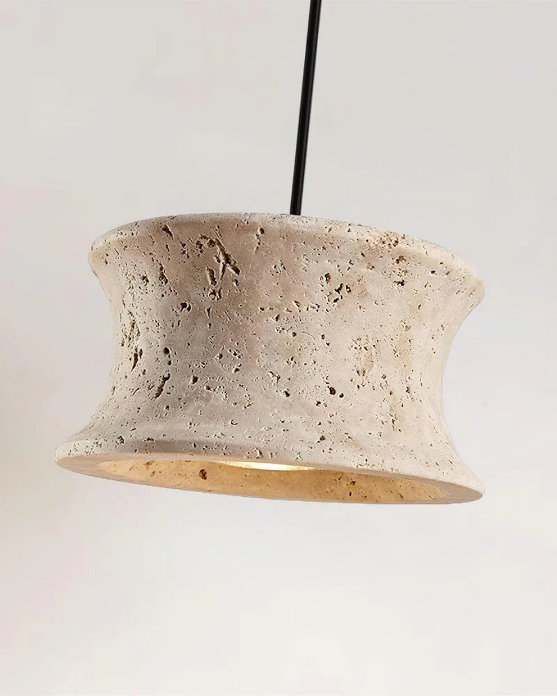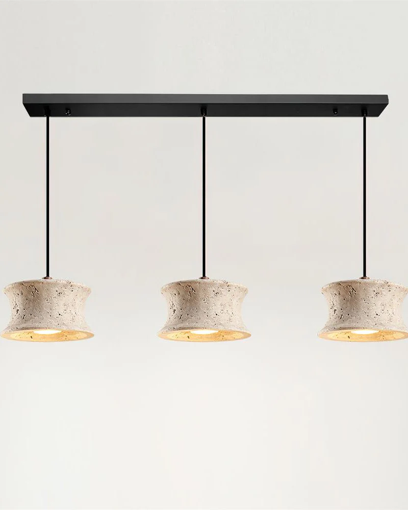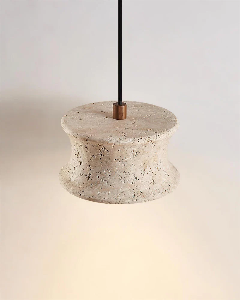 Suspension KIO : L’Équilibre Sculptural du Travertin et du Noyer