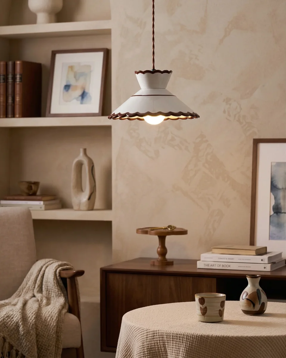 Conçue pour les esthètes en quête de matières haptiques, la collection LUKI célèbre l’imperfection parfaite de la terre façonnée. Son abat-jour en céramique d’art, disponible en Blanc Épuré ou Marron Chaleureux, capte la lumière pour révéler des textures subtiles qui changent au fil de la journée. Cette esthétique Modern Organic s’intègre avec une grâce magistrale au-dessus d’un îlot de cuisine de standing, dans un salon minimaliste ou pour parfaire l’aura d’une suite de maître.