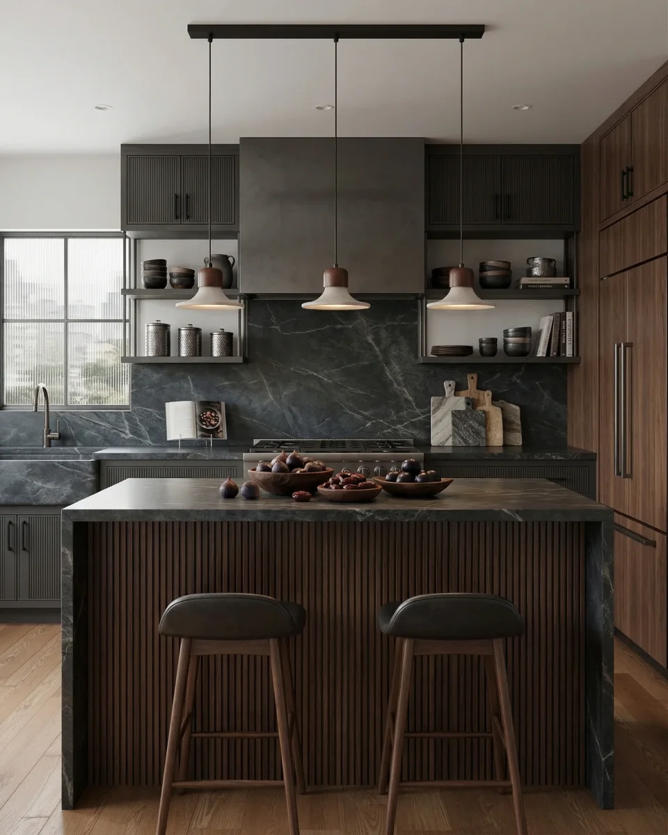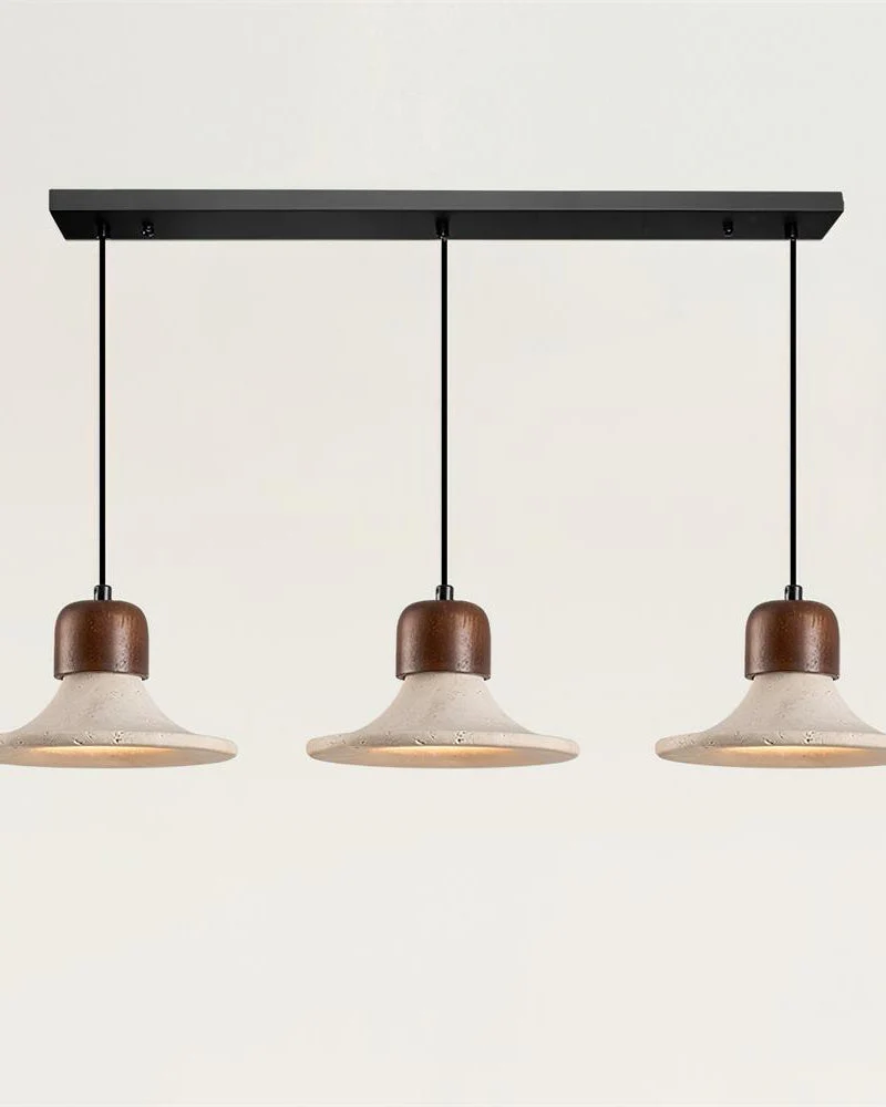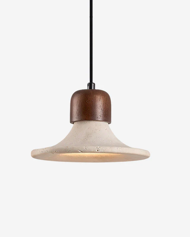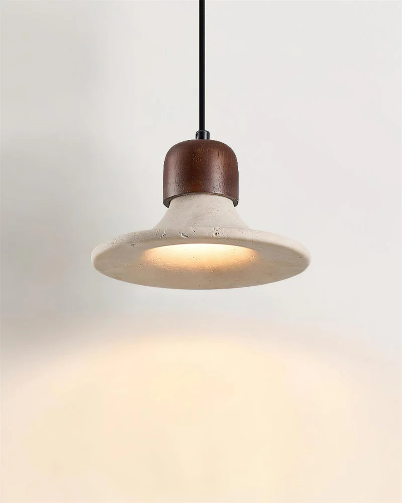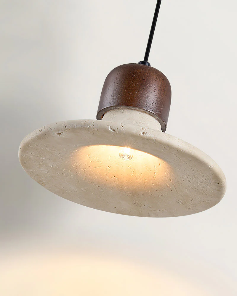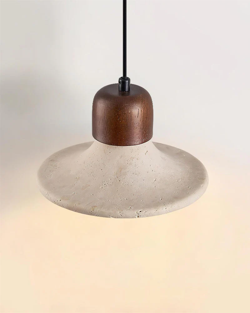 Suspension TINO : L’Intersection Sculpturale du Travertin et du Bois de Noyer