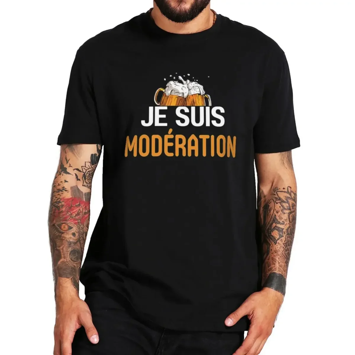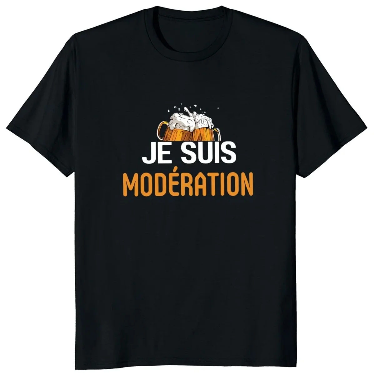 Rejoignez la fête avec notre t-shirt « je suis modération »! Ce jeu de mot amusant vous fera rire avec vos amis lors de soirées arrosées. Restez modéré avec style et humour!