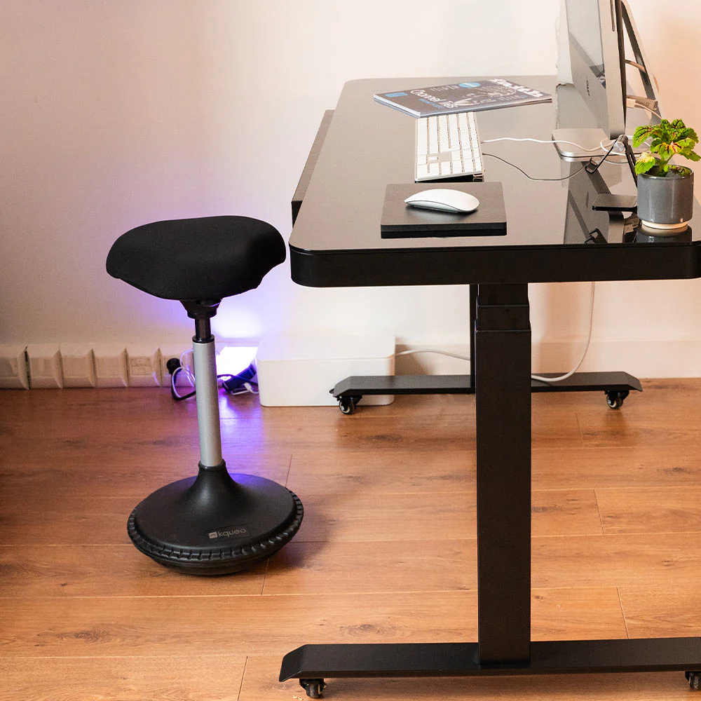 Tabouret ergonomique assis-debout KQUEO Wooble, assise à bascule, hauteur réglable 55 à 83 cm, rotation 360°, base antidérapante.